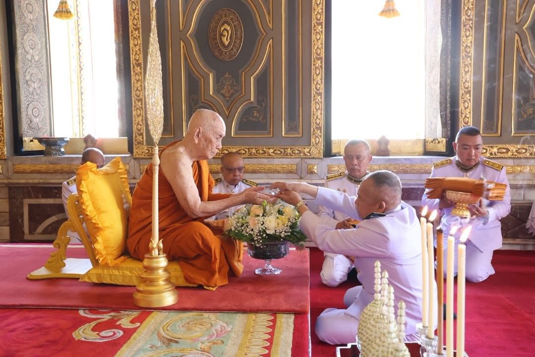 ในหลวง พระราชินี โปรดเกล้าฯ ให้ราชเลขานุการ เชิญดอกไม้ธูปเทียน น้ำสรง และผ้าไตรพระราชทาน ถวายแด่ สมเด็จพระสังฆราชฯ