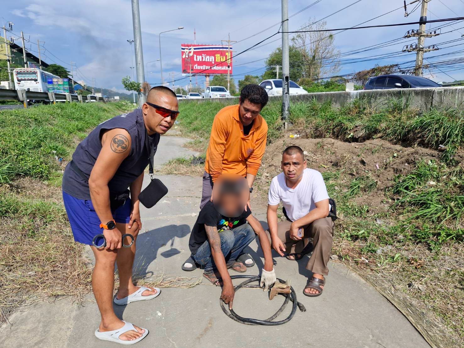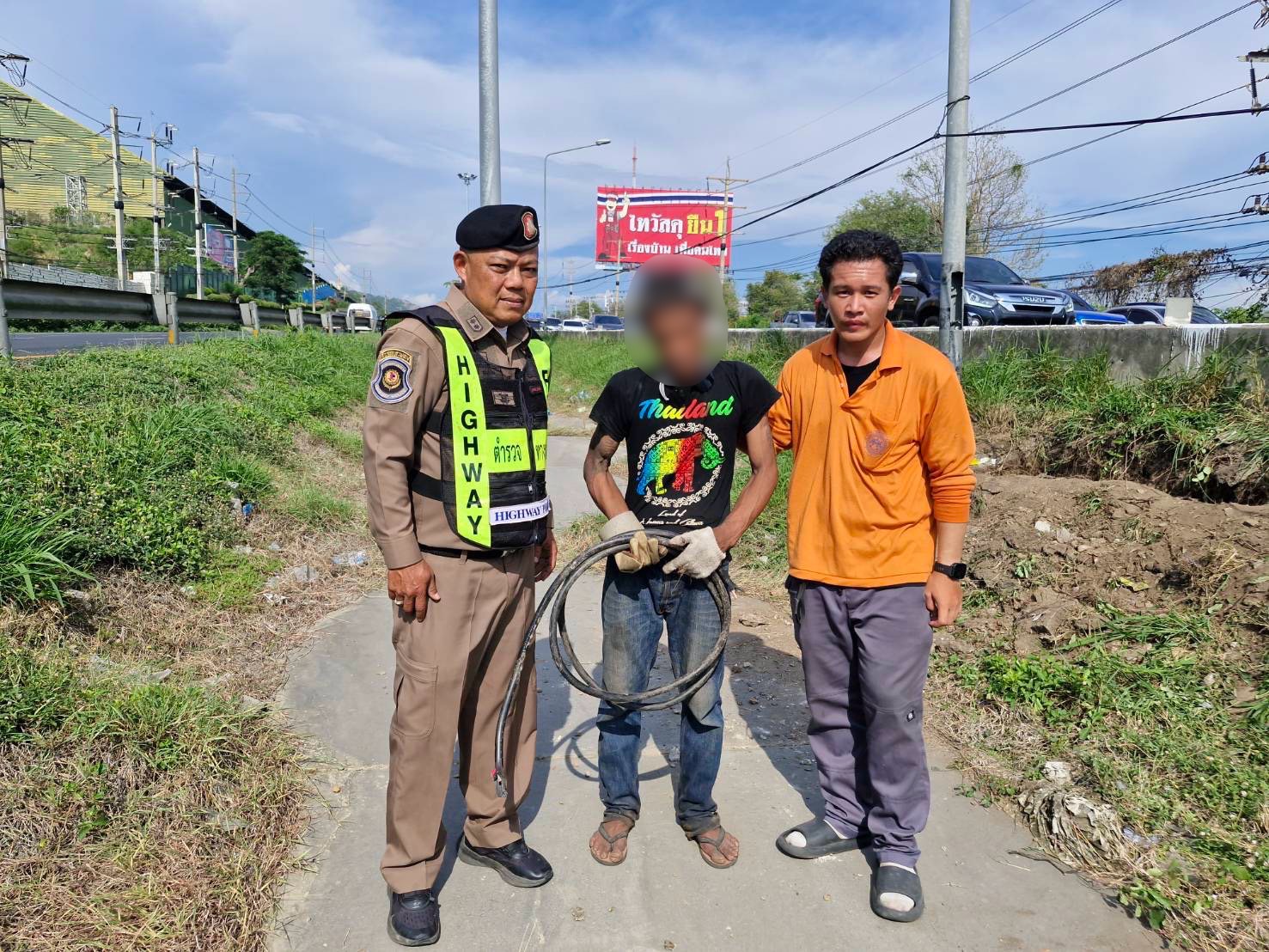 ตำรวจทางหลวง รวบหัวขโมยลอบตัดสายไฟขายหาเงินซื้อยาบ้าเสพ เจ้าตัวรับทำมาแล้วหลายครั้ง