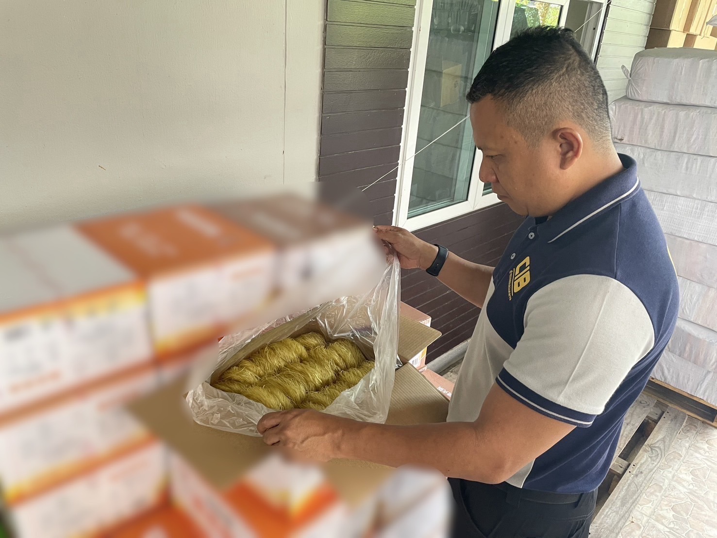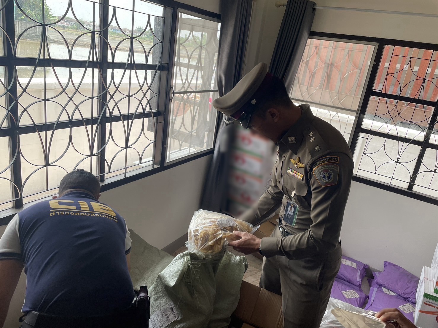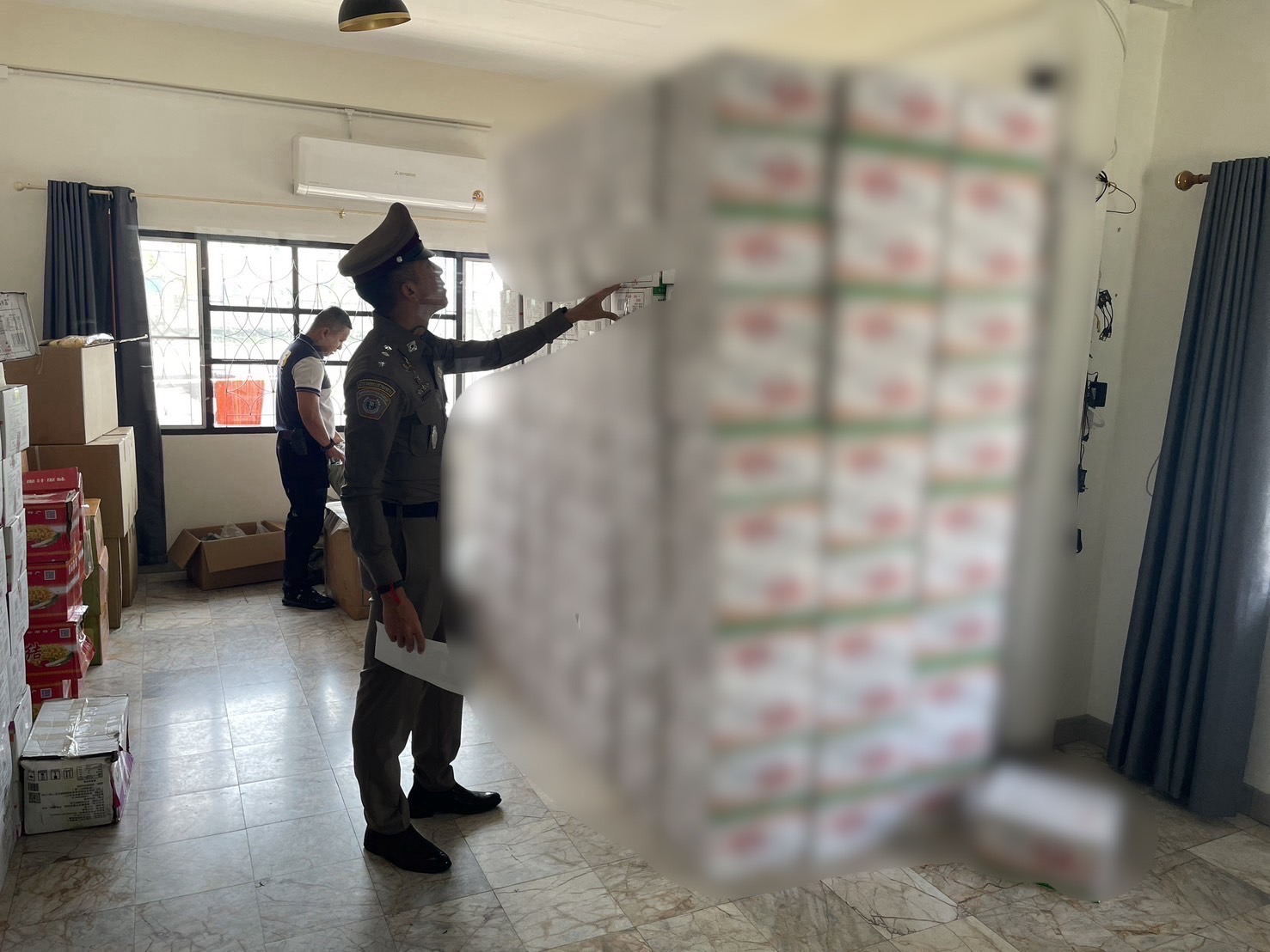 จากการตรวจค้นพบหญิงไทยเป็นผู้ดูแลสินค้า และภายในพบ สินค้าประเภทอาหาร เช่น เส้นบะหมี่, ซุปหม่าล่า, ฟองเต้าหู้ ฯลฯ ซึ่งจากการตรวจสอบพบว่า สินค้าส่วนใหญ่เป็นสินค้าที่มีแหล่งกำเนิดจากต่างประเทศไม่ปรากฎหมายเลขจดแจ้งหรือเครื่องหมาย อย. อยู่บนตัวผลิตภัณฑ์ของสินค้าแต่อย่างใด จึงได้ทำการตรวจยึดและอายัดสินค้าไว้ในสถานที่ดังกล่าว รวมจำนวนกว่า 8,000 ชิ้น มูลค่ารวมทั้งสิ้นกว่า 3 แสนบาท และนำส่งพนักงานสอบสวน กก.2 บก.ปอศ. เพื่อดำเนินการตามกฎหมายต่อไป