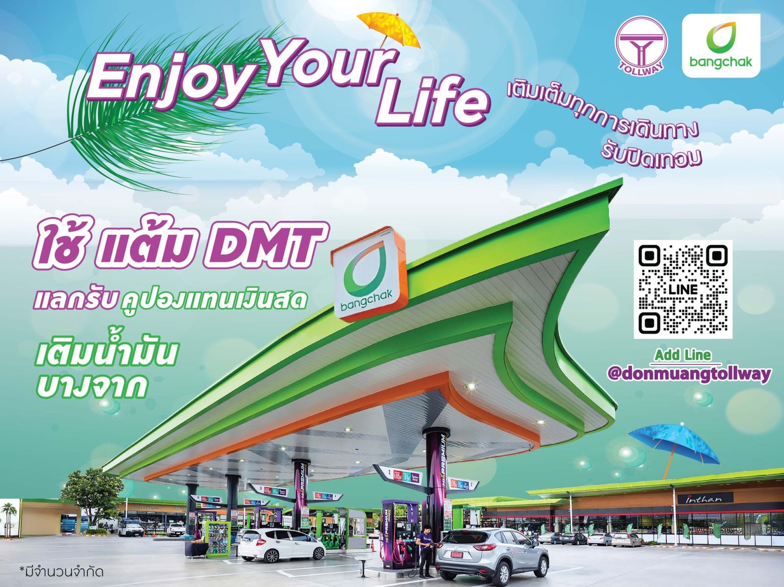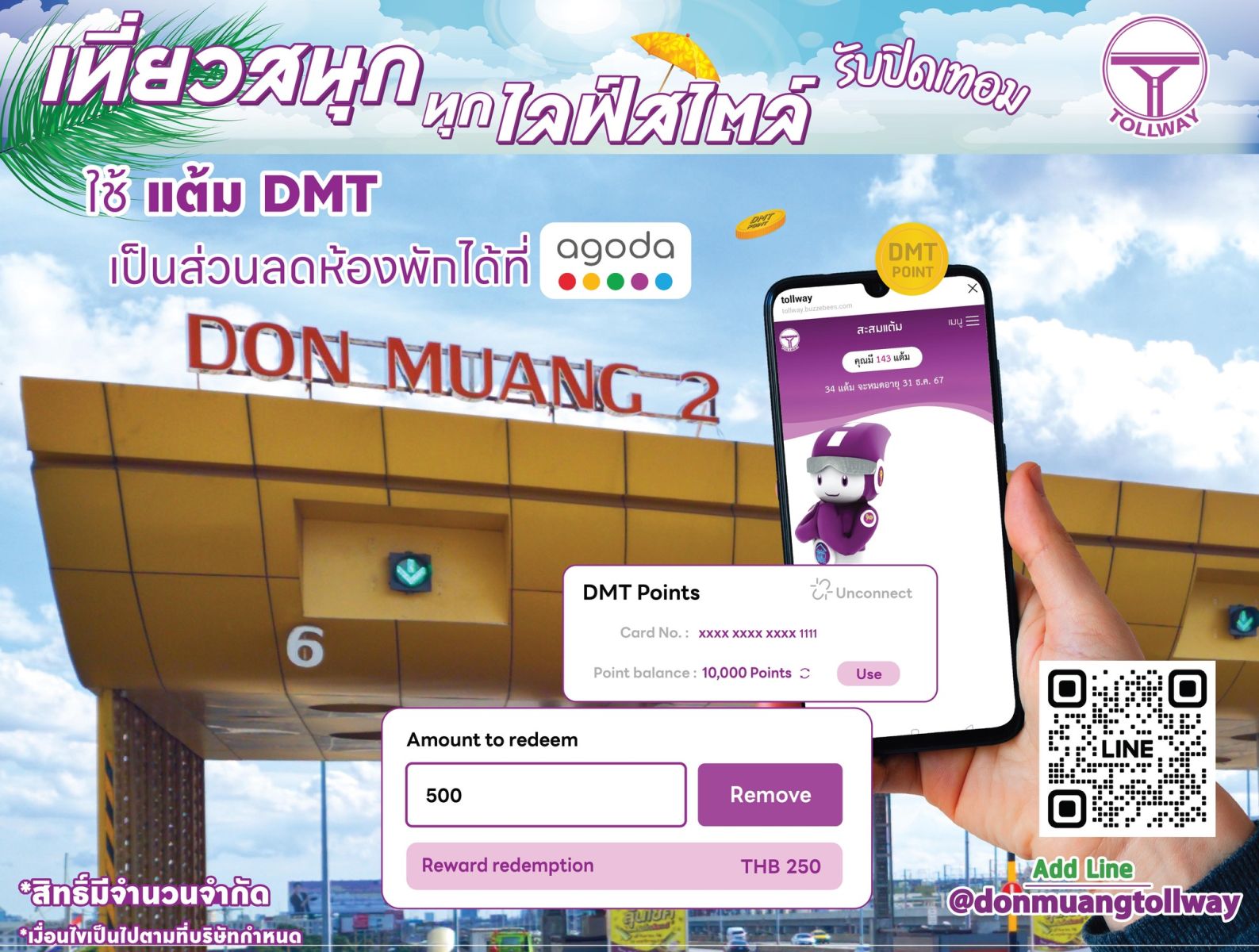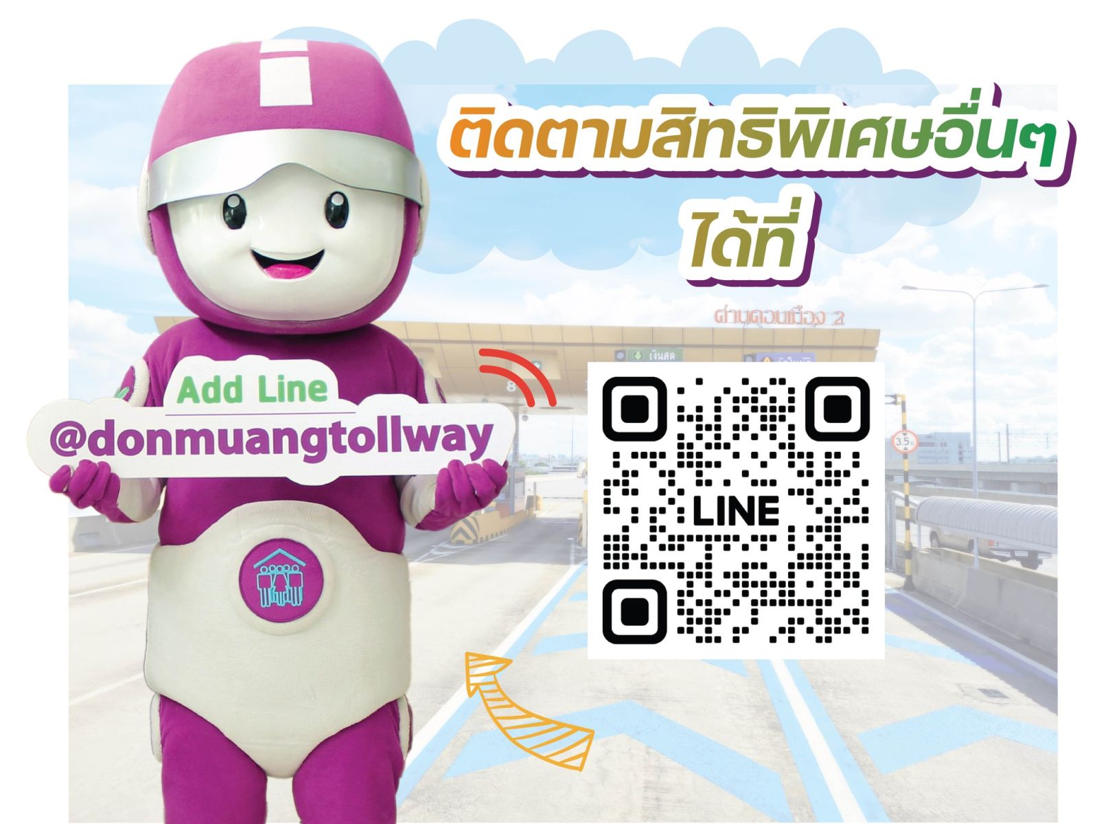 ไม่เพียงแค่ความสะดวกและปลอดภัยในการเดินทาง ดอนเมืองโทล์ลเวย์ยังพร้อมตอบแทนคุณทุกกิโลเมตรที่ขับเคลื่อนไป “ยกระดับทุกการเดินทาง สะสมแต้มกับดอนเมืองโทล์ลเวย์ – มอบความพิเศษในทุกการเดินทางของคุณ” เริ่มเลยวันนี้ แอดไลน์ @donmuangtollway