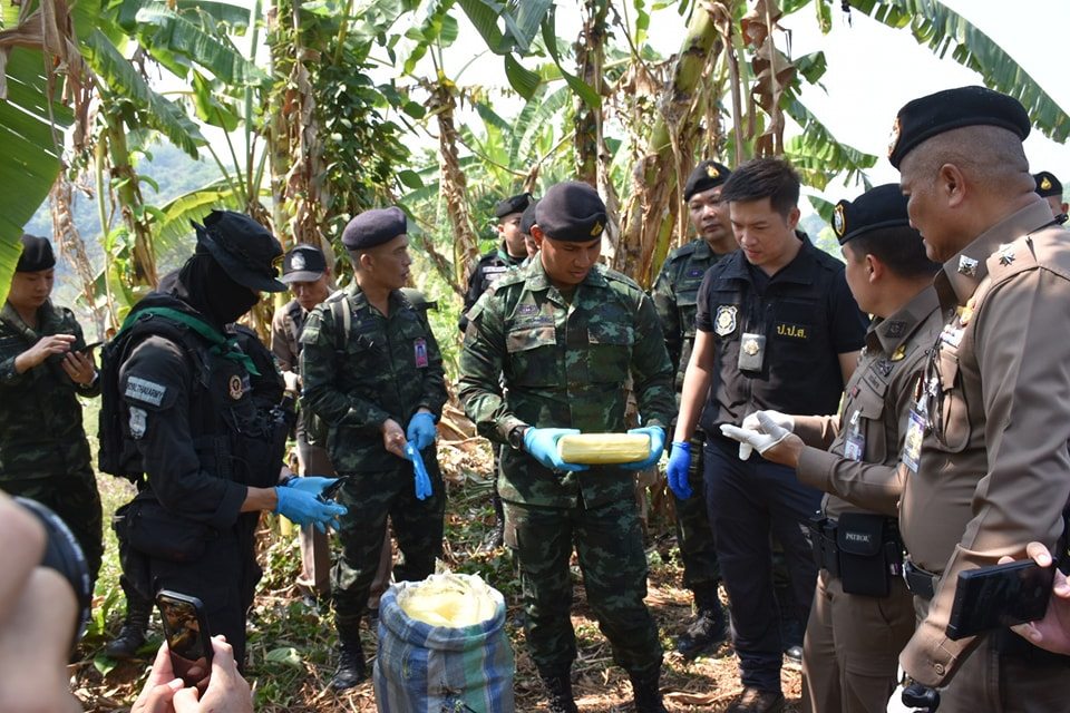 จากกรณี เมื่อวันที่ 22 เมษายน 2568 เวลา 18.00 น. กองร้อยทหารพรานที่ 3106 หน่วยเฉพาะกิจกรมทหารพรานที่ 31 ทำการตั้งจุดตรวจเพื่อป้องกันและสกัดกั้นการกระทำผิดตามพระราชบัญญัติยาเสพติด บริเวณ บ้านธรรมจาริก ตำบลแม่จัน อำเภอแม่จัน จังหวัดเชียงราย หลังจากสืบทราบว่าจะมีการลักลอบลำเลียงยาเสพติดจากพื้นที่แนวชายแดนผ่านพื้นที่ดังกล่าว ในระหว่างปฏิบัติหน้าที่ตรวจพบรถยนต์ต้องสงสัยขับเข้ามาบริเวณจุดตรวจ เจ้าหน้าที่จึงได้ส่งสัญญาณให้หยุด เพื่อขอทำการตรวจค้น แต่รถคันดังกล่าวเมื่อเห็นเจ้าหน้าที่ได้เร่งความเร็วหลบหนี จึงได้ทำการไล่ติดตาม จนพบรถยนต์ สีบรอนซ์เงิน หมายเลขทะเบียน จ.เชียงราย จอดอยู่บริเวณริมถนนห่างจาก จุดตรวจระยะทางประมาณ 4.5 กิโลเมตร ไม่พบผู้ต้องสงสัย หน่วยจึงได้จัดกำลังพลเข้าตรวจสอบรถยนต์คันดังกล่าว เบื้องต้นไม่พบสิ่งผิดกฎหมาย จึงได้ทำการตรวจสอบพื้นที่บริเวณโดยรอบ ตรวจพบกระสอบดัดแปลงเป็นเป้สะพายหลัง จำนวน 10 กระสอบ ภายในบรรจุยาเสพติดให้โทษประเภท 1 (ยาบ้า) กระสอบละ 250,000 เม็ด รวมทั้งสิ้น 2,500,000 เม็ด วางอยู่บริเวณป่ากล้วย หน่วยจึงได้จัดกำลังพลเพิ่มเติม จำนวน 2 ชุดปฏิบัติการ วางกำลังควบคุมพื้นที่เกิดเหตุ และประสานเจ้าหน้าที่ตำรวจสถานีตำรวจภูธรบ้านดู่ ร่วมทำการตรวจสอบพื้นที่