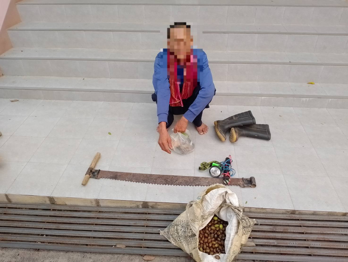 คณะเจ้าหน้าที่ได้ยินเสียงต้นไม้ล้มและเข้าซุ่มตรวจสอบจนพบชายหนึ่งคนกำลังนั่งเก็บของอยู่ในบริเวณดังกล่าว จึงแสดงตัวเข้าตรวจสอบและทราบว่า เป็นชาย อายุ 48 ปี เป็นราษฎรบ้านคำแสนสุข ตำบลห้วยข่า อำเภอบุณฑริก จังหวัดอุบลราชธานี จากการตรวจสอบพบของกลางเป็นไม้สำรอง จำนวน 2 ต้น/ท่อน ปริมาตรรวม 2.06 ลูกบาศก์เมตร พร้อมอุปกรณ์ในการกระทำผิด ได้แก่ เลื่อยตัด 1 ปื้น มีดปลายแหลม 1 เล่ม ไฟฉายชนิดคาดศีรษะ 1 ชุด กระสอบปุ๋ยสีขาว 1 ใบ และผลสำรอง 5 กิโลกรัม