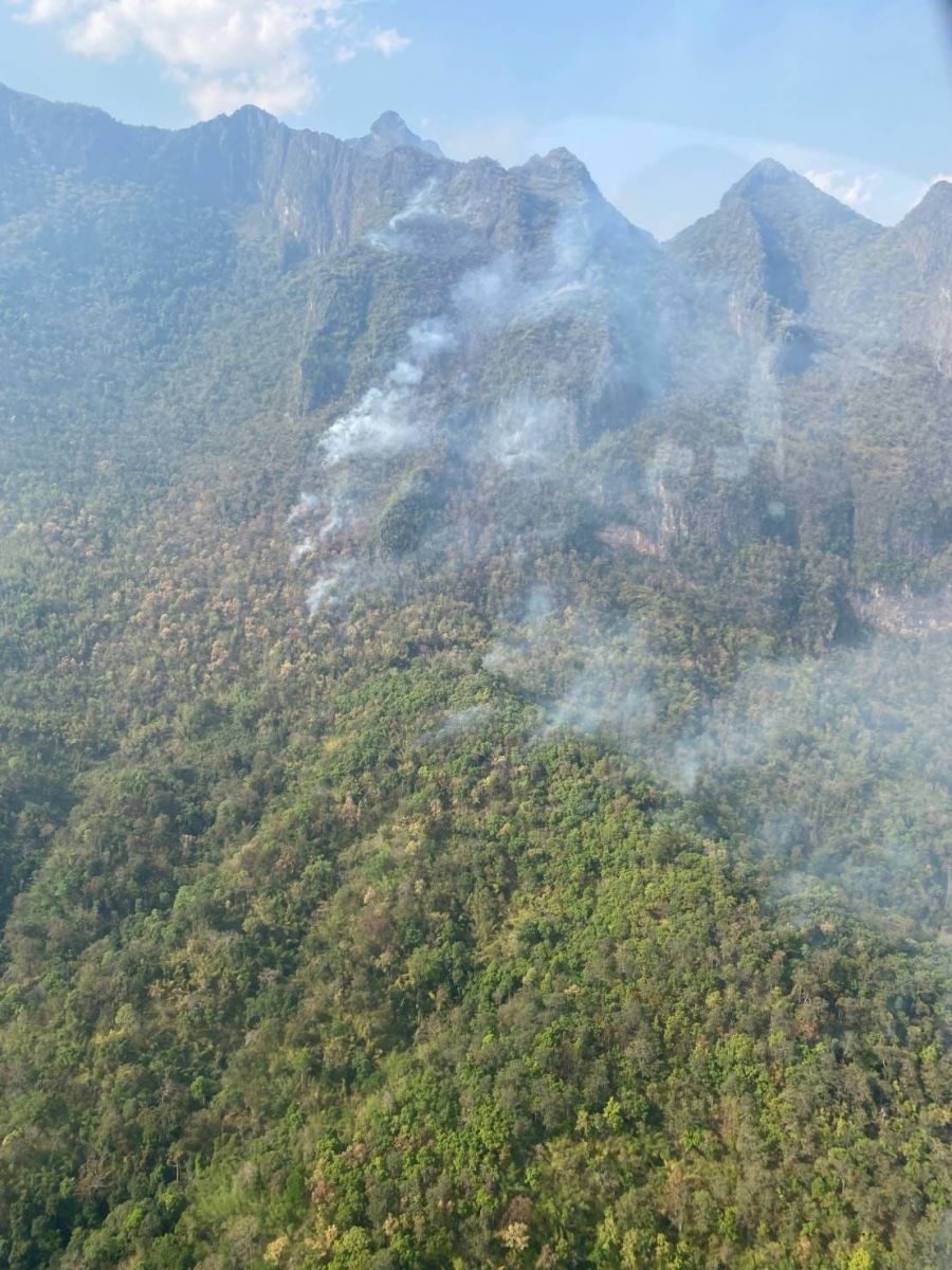 ทั้งนี้ เนื่องจากเกรงว่าไฟจะลุกลามข้ามฝั่งไปยังภูเขาใกล้เคียง และระงับเหตุได้ยากขึ้น ประกอบกับเป็นพื้นที่สูงชัน คณะทำงานชุดที่ 4 ได้ประสานศูนย์ปฏิบัติการบินภาคเหนือ ศทอ. เพื่อรับการสนับสนุนอากาศ ยานเพื่อการดับไฟในพื้นที่ จำนวน 12 เที่ยวบิน