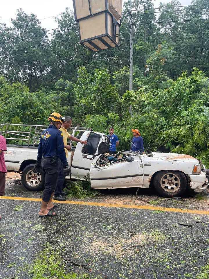 จากการสอบถามที่เห็นเหตุการณ์คนแรก เล่าว่า ขณะเกิดเหตุตนขับรถจะกลับบ้านแล้วก็มาเจอ ต้นไม้ล้มลงมาทับรถกระบะคันดังกล่าวจึงได้เดินเข้าไปดู พบว่าด้านหน้าบริเวณห้องคนขับยุบลงไปทับตัว และศีรษะของผู้เสียชีวิตทั้งสองคน ส่วนด้านหลังพบว่ามีเด็กวัยรุ่นผู้หญิง ได้รับบาดเจ็บ จึงแจ้งกู้ภัยเข้าช่วยเหลือเอาผู้บาดเจ็บ และผู้เสียชีวิตออกมาจากตัวรถดังกล่าว