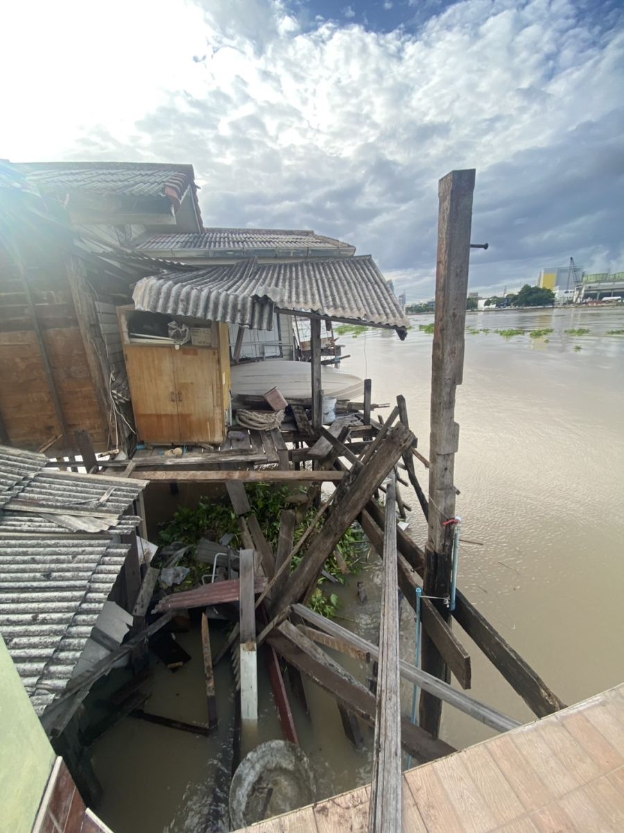 บ้านริมแม่น้ำเจ้าพระยาทรุดตัวลงน้ำ หญิงวัย 60 กว่าปีได้รับบาดเจ็บ เทศบาลนครนนท์เร่งช่วยเหลือ จ.นนทบุรี