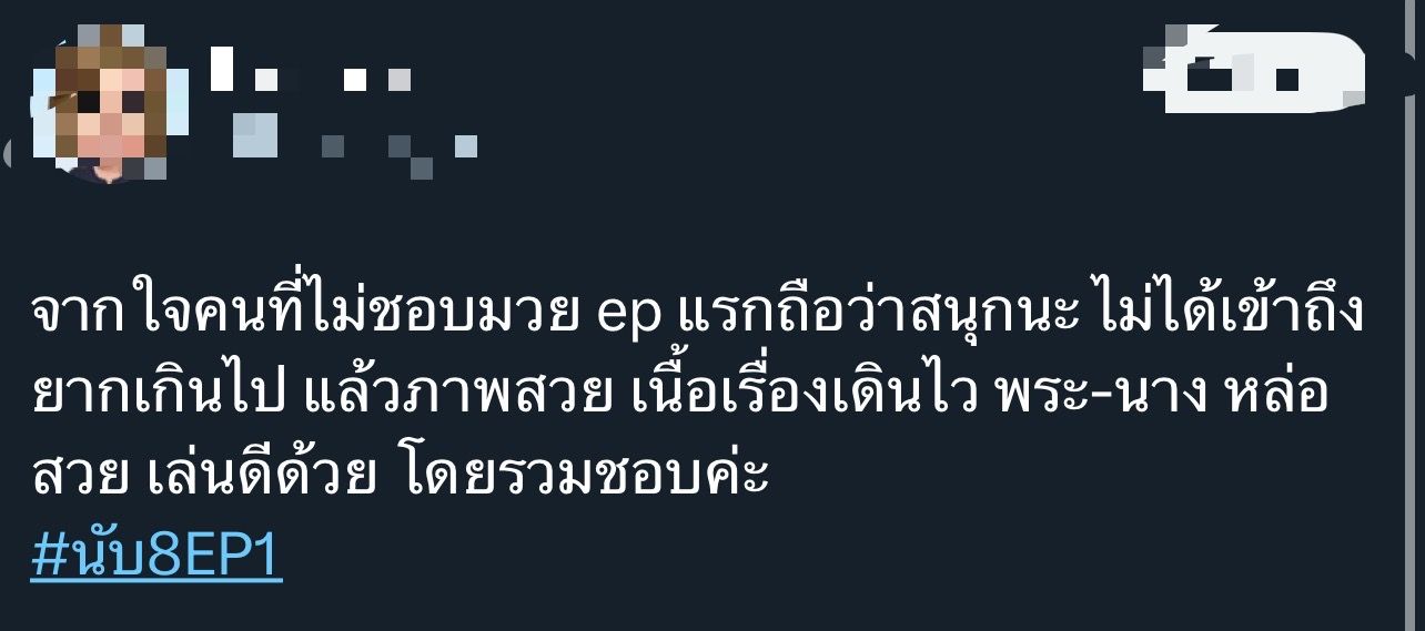 เปิดตัวมาก็ตีหัวเข้าบ้านอย่างแรง สำหรับละคร เรื่อง “นับ8” ทางช่อง 3 ที่พลิกแนวละครแบบใหม่ที่ไม่เคยเห็นที่ไหนมาก่อนกับการตีแผ่วงการมวยไทย โดยผู้จัดฯ ดีกรีลูกเจ้าของค่ายมวยตัวจริง “คุณปิ่น-ณัฏฐนันท์ ฉวีวงษ์” ที่ซัดเรตติ้ง อีพี 1 ไปแบบไม่ธรรมดาในพื้นที่กรุงเทพฯ ไปมากถึง 2.9 กลุ่มผู้ชมอายุ 15 ปี ขึ้นไป หรือ 15 BU+ (Bangkok and Urban) 2.3 ในอีพี 2 ในพื้นที่กรุงเทพฯ ไปมากถึง 3.0 กลุ่มผู้ชมอายุ 15 ปี ขึ้นไป หรือ 15 BU+ (Bangkok and Urban) 2.5