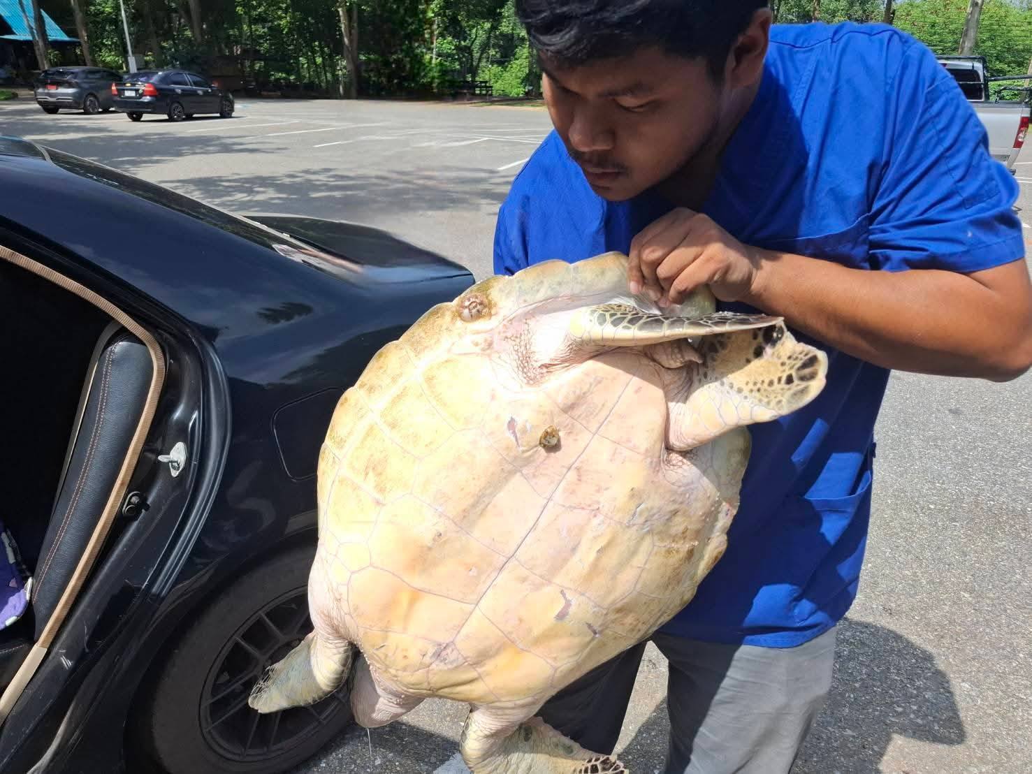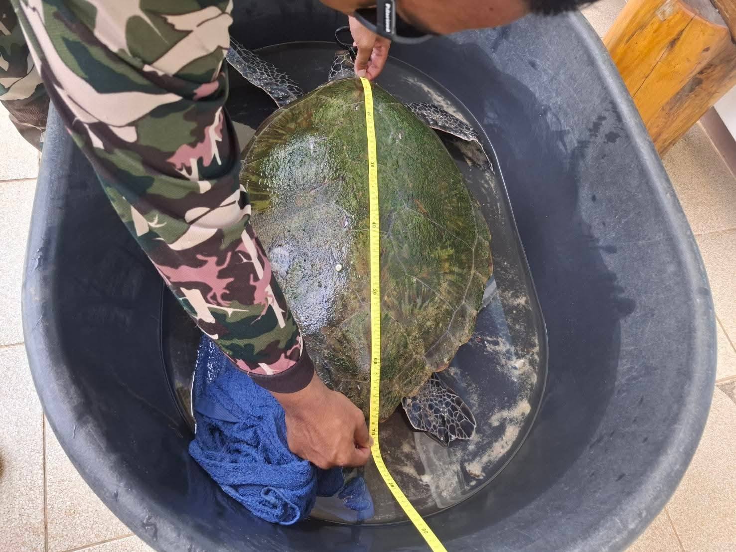 นายพิทยา สะศรีสังข์ หัวหน้าอุทยานแห่งชาติเขาแหลมหญ้า-หมู่เกาะเสม็ด เปิดเผยว่า เต่าตนุที่พบมีความยาวลำตัว 69 เซนติเมตร และกว้าง 62 เซนติเมตร อยู่ในสภาพมีชีวิต เจ้าหน้าที่อุทยานฯ ได้เข้าตรวจสอบและให้ความช่วยเหลือในทันที ก่อนจะส่งมอบเต่าตนุตัวดังกล่าวให้แก่เจ้าหน้าที่ทรัพยากรทางทะเลและชายฝั่ง (ทช.) เพื่อทำการตรวจสุขภาพและรักษาฟื้นฟูต่อไป ก่อนที่จะปล่อยกลับคืนสู่ธรรมชาติต่อไป