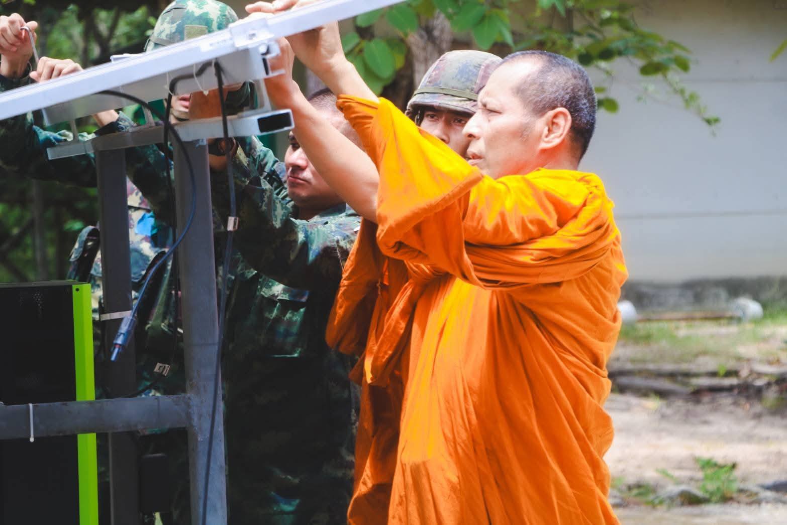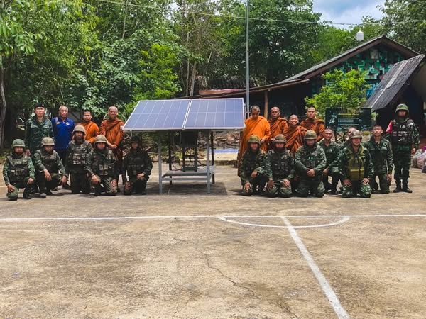 โอกาสนี้ พระปัญญาวชิรโมลี ได้มอบโซลาร์เซลล์ พร้อมทั้งเหรียญ “รักแผ่นดินเกิด” และ เหรียญ “โพชฌงค์” ซึ่งเป็นวัตถุมงคลที่หลวงปู่ได้แผ่เมตตาเป็นพิเศษ มอบให้เป็นขวัญและกำลังใจแก่กำลังพลผู้ปฏิบัติหน้าที่ป้องกันชายแดน ในการปกปักรักษาอธิปไตยของชาติ