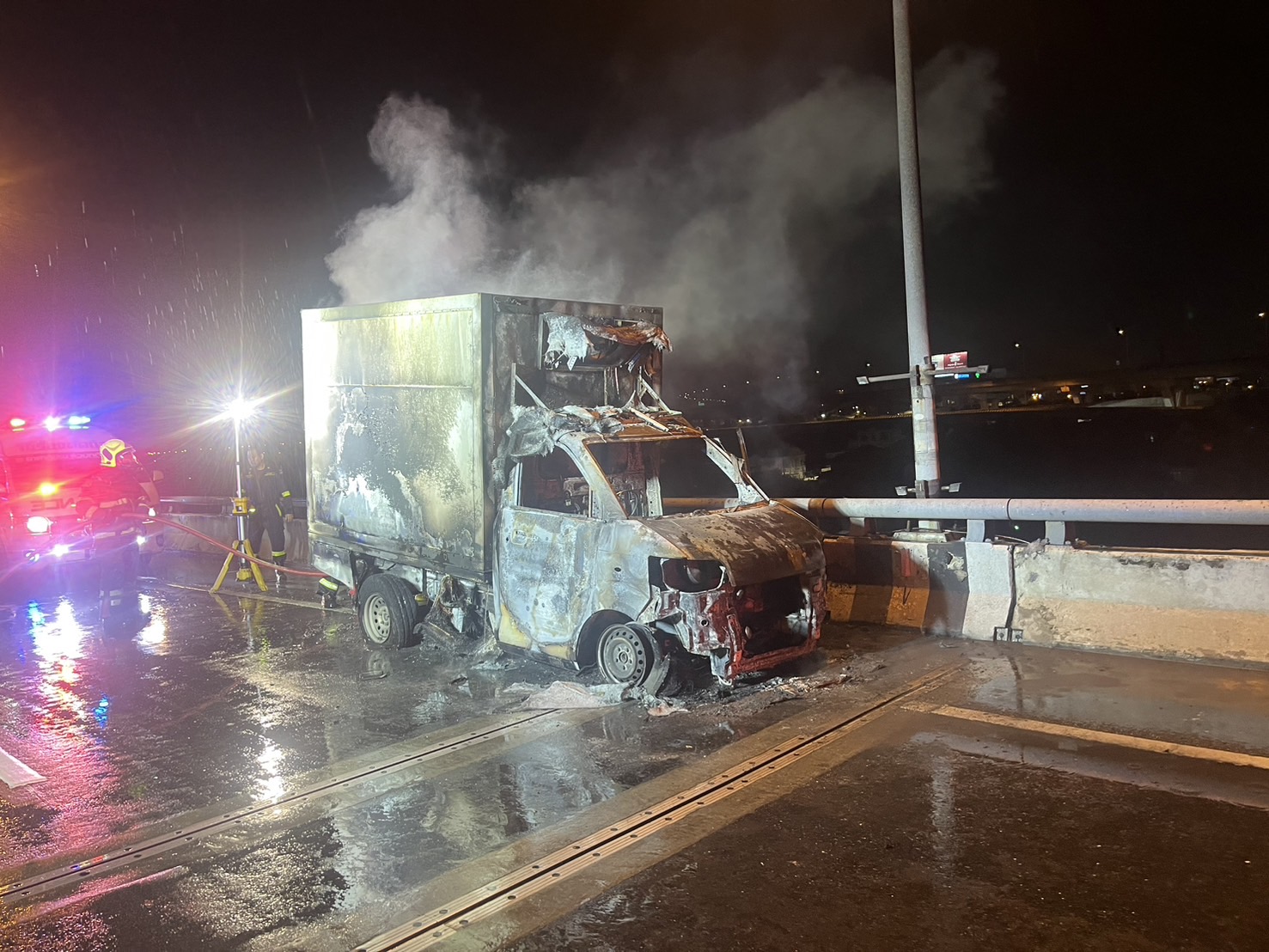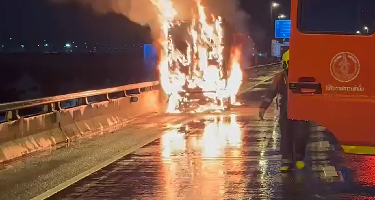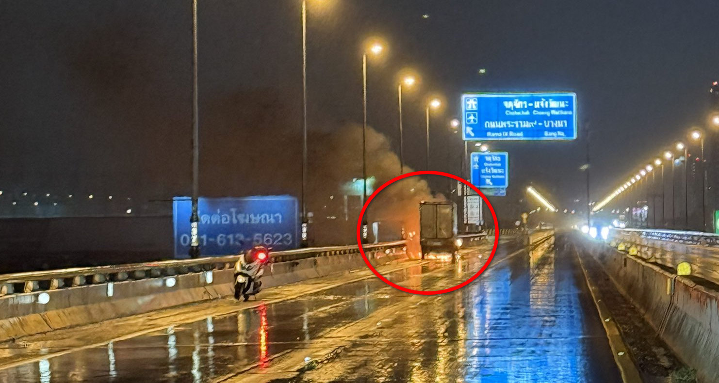 เพลิงไหม้รถกระบะบนคู่ขนานลอยฟ้า เสียหายทั้งคัน