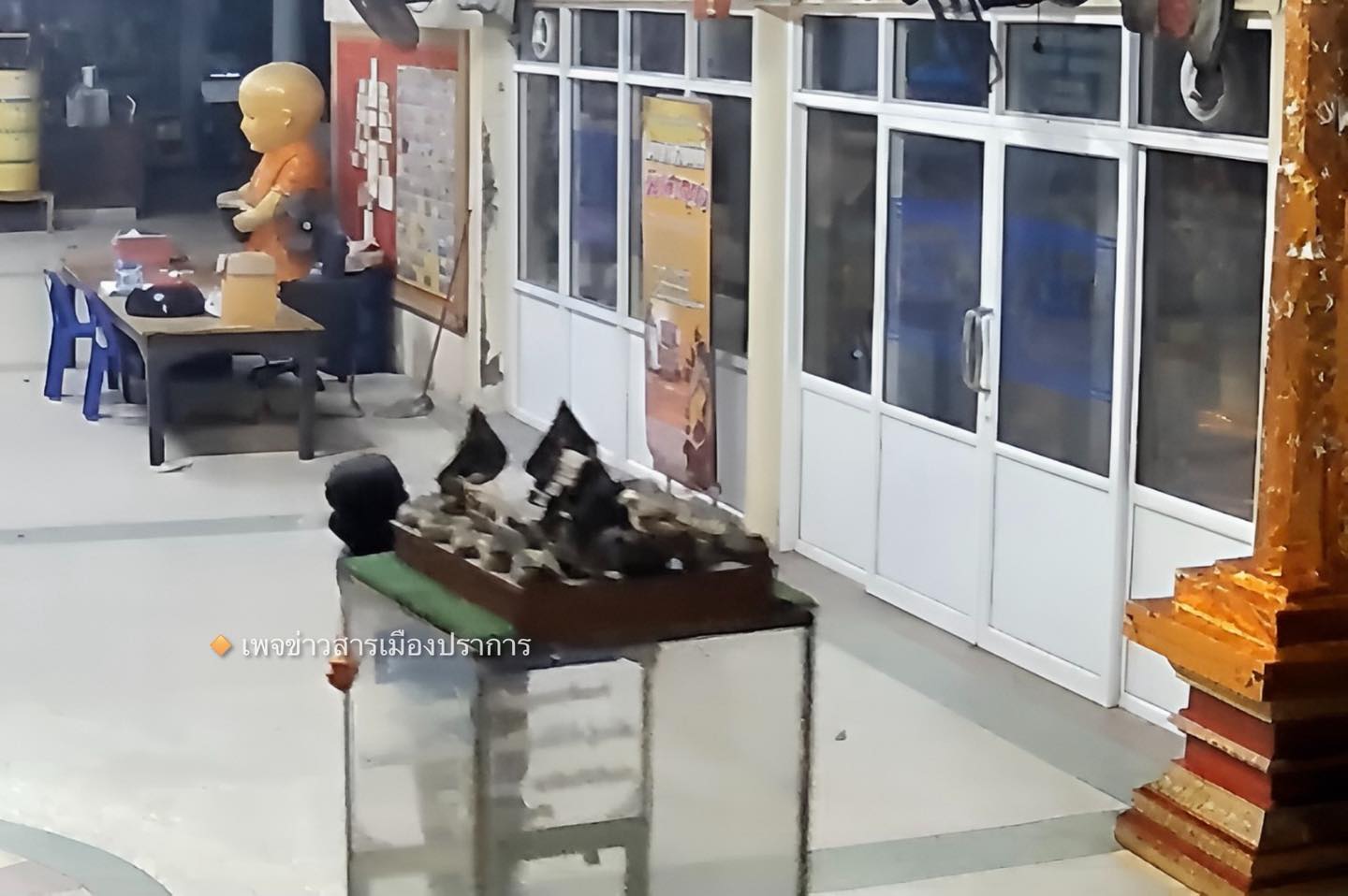 ที่เกิดเหตุพบตู้บริจาคยังคงตั้งอยู่บริเวณศาลากลาง ภายในตู้พบเพียงเหรียญบาทและเหรียญห้าบาทกระจายเกลื่อนราวกับโจรเมินเงินเหรียญ หอบเอาแต่แบงก์ หนีหายไปหมด และความเสียหายให้พระท่านต้องมานั่งเก็บกวาด