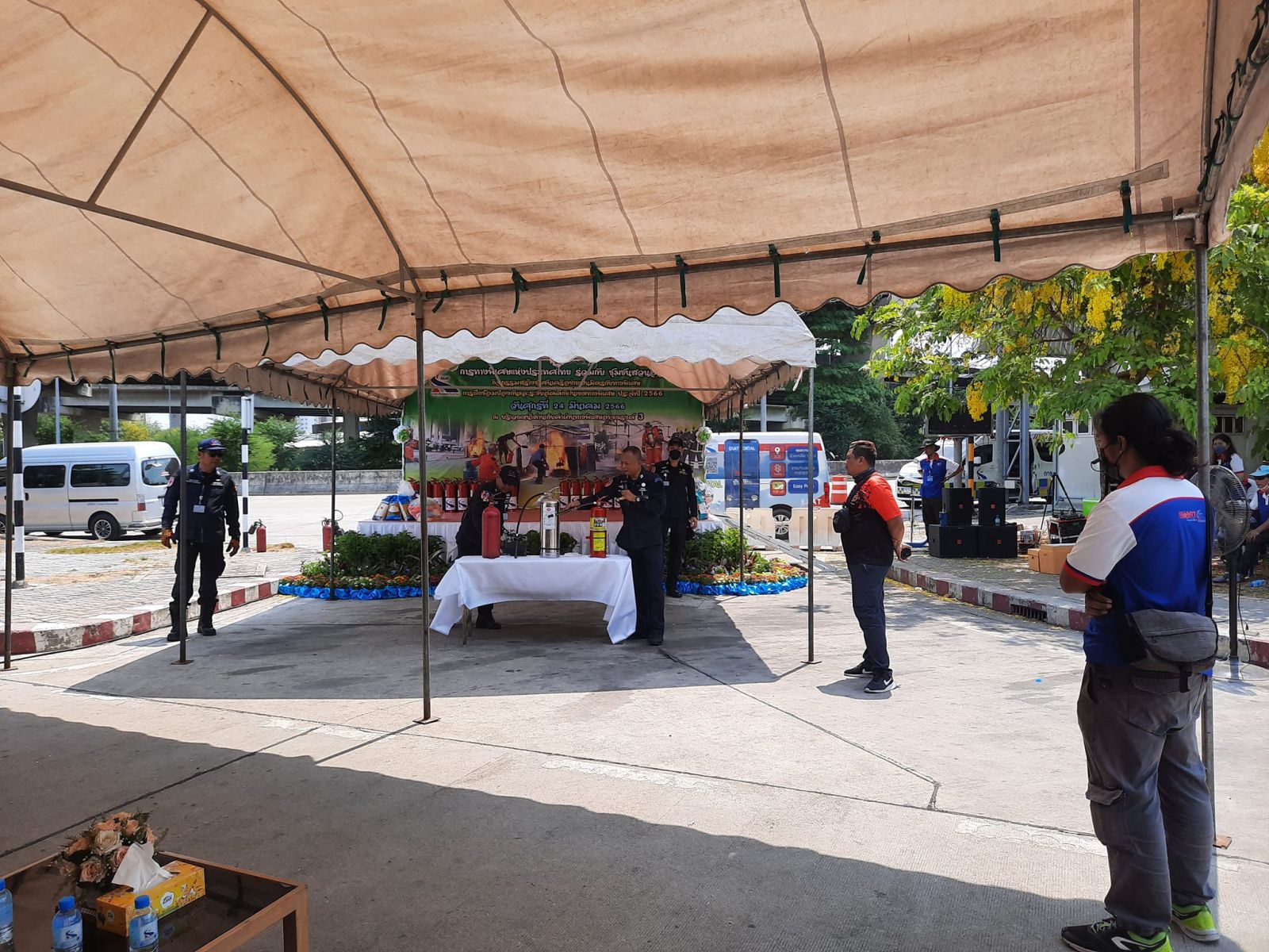 โดยในการนี้ กทพ. ให้ความรู้พร้อมทั้งสาธิตการฝึกซ้อมการป้องกันและระงับอัคคีภัย รวมถึง การปฐมพยาบาลเบื้องต้นละการช่วยฟื้นคืนชีพ (First Aid & CPR) พร้อมทั้งได้มอบอุปกรณ์ถังดับเพลิงให้กับชุมชนสวนอ้อยจำนวน 30 ถัง อีกทั้งยังได้มอบอุกรณ์กีฬา ให้แก่โรงเรียนเด็กเล็กบ้านเทพ อีกด้วย