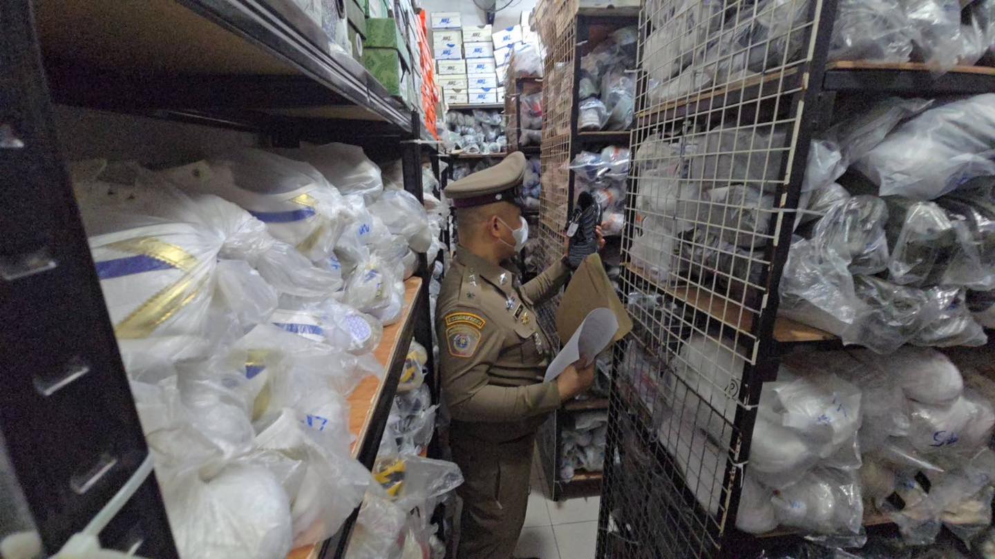 ตำรวจสอบสวนกลาง (CIB) ลุยห้างดังย่านปทุมวัน ทลายคลังเก็บสินค้าปลอมซุกลานจอดรถ แปะป้าย “ห้องวิศวะ” ตบตาเจ้าหน้าที่ เปิดออกมาพบรองเท้าปลอมกว่า 2,600 คู่ ความเสียหายกว่า 10 ล้านบาท