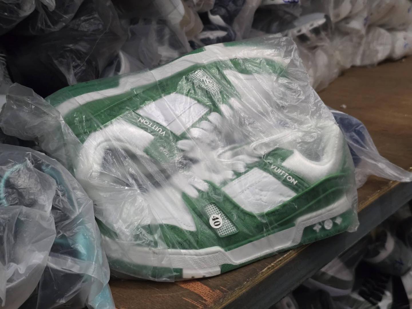 พร้อมตรวจยึดของกลาง รวม 2.610 ชิ้น มูลค่าความเสียหายมากกว่า 10 ล้านบาท โดยมีของกลาง เป็นรองเท้าแบรนด์ต่าง ๆ อาทิเช่น Dior, Louis Vuitton, Hermès, Gucci, Nike, Adidas, New Balance และ Balenciaga