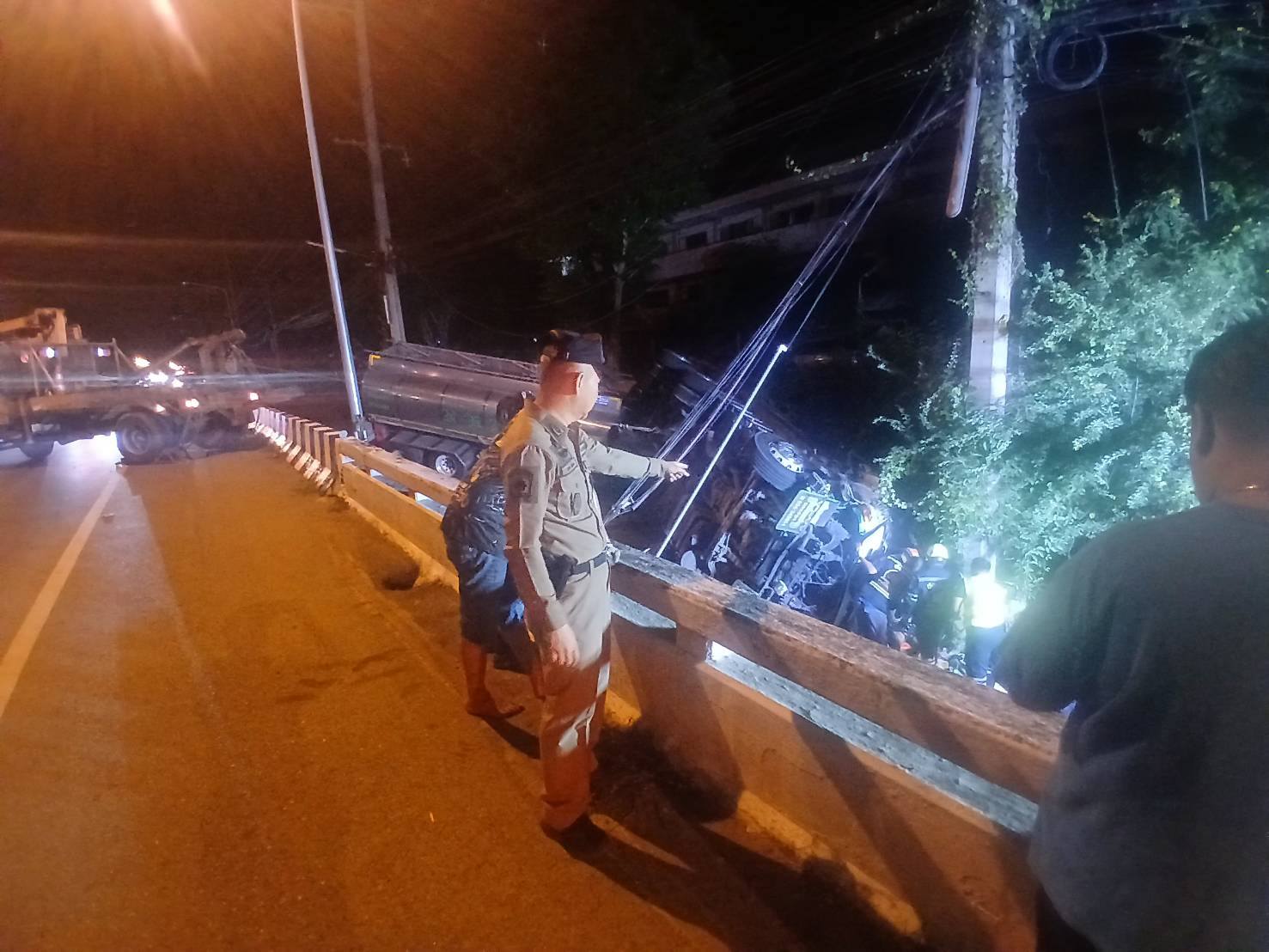 ที่เกิดเหตุอยู่บริเวณริมถนนเพชรเกษม ขาเข้ากรุงเทพ เลนคู่ขนาน กม.ที่ 134 ต.สระพัง อ.เขาย้อย จ.เพชรบุรี พบรถบรรทุกน้ำมันพืช หมายเลขทะเบียน ป้ายเหลือง 70-5247 ชุมพร อยู่ในสภาพเสียหลักพลิก พลิกตะแคงตกถนน ชนอัดก๊อบปี้ติดอยู่กับเสาไฟฟ้าแรงสูง