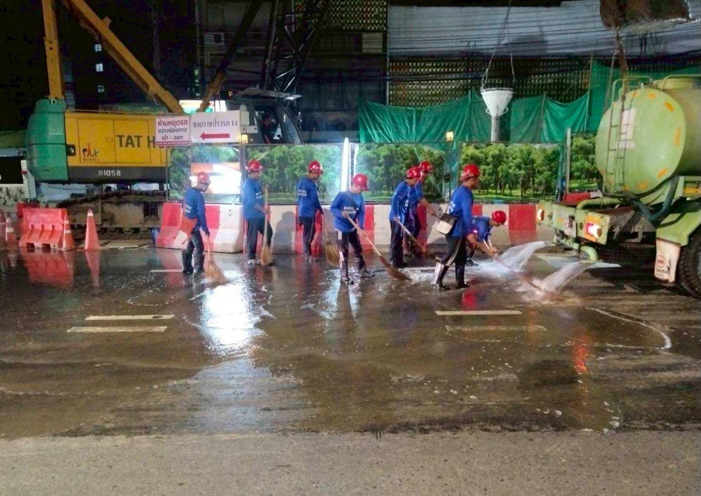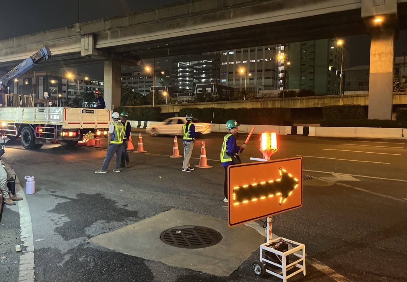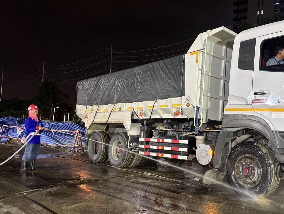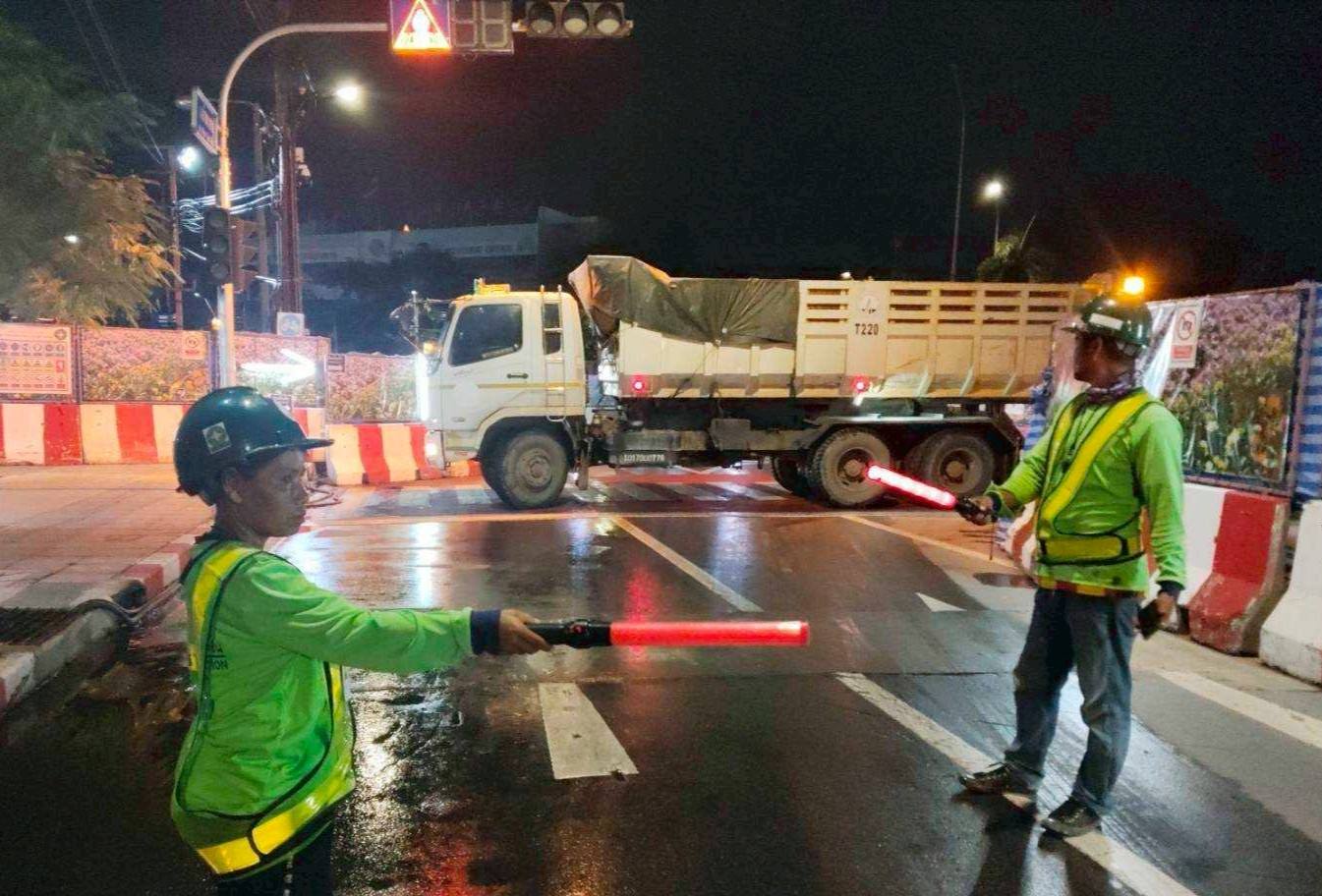 โดยในการลงพื้นที่ครั้งนี้ รฟม. ได้ตรวจสอบการปฏิบัติตามมาตรการป้องกันและแก้ไขผลกระทบสิ่งแวดล้อมในช่วงเวลากลางคืน ตามที่กำหนดไว้ในรายงานการประเมินผลกระทบสิ่งแวดล้อม (EIA) เช่น การปิดคลุมกองดิน กองทราย และเศษวัสดุก่อสร้าง ที่ก่อให้เกิดฝุ่นละอองในระหว่างรอการใช้งานหรือรอการขนย้าย การจัดเก็บขยะ การทำความสะอาดในพื้นที่ก่อสร้างและถนนสาธารณะ การสวมใส่อุปกรณ์คุ้มครองความปลอดภัยส่วนบุคคล รวมถึงตรวจสอบการติดตั้งรั้วทึบสูง 2 เมตร และการติดตั้งไฟส่องสว่างและสัญญาณไฟบนรั้วตามแนวพื้นที่ก่อสร้าง การป้องกันน้ำมันรั่วไหลจากเครื่องจักร การทำความสะอาดล้อรถก่อนออกจากพื้นที่ก่อสร้าง การจัดทำทางเดินเท้าชั่วคราวทดแทนทางเดินเท้าเดิมให้มีความปลอดภัย พร้อมป้ายแจ้งบอกแนวเส้นทางเดินเท้า และจัดให้มีเจ้าหน้าที่โครงการฯ คอยอำนวยความสะดวกให้กับประชาชนผู้ใช้เส้นทางในระหว่างที่มีการก่อสร้าง พร้อมกำชับให้เฝ้าระวังและดำเนินงานตามมาตรการป้องกันและแก้ไขปัญหาน้ำท่วมขังในบริเวณพื้นที่ก่อสร้าง เพื่ออำนวยความสะดวกและปลอดภัยให้แก่ประชาชนตลอดช่วงฤดูฝนนี้ และเน้นย้ำให้เจ้าหน้าที่ทุกคนปฏิบัติตามมาตรการป้องกันและแก้ไขผลกระทบสิ่งแวดล้อมอย่างเคร่งครัดต่อไป สำหรับท่านที่สนใจสามารถติดตามข้อมูลโครงการฯ ได้ที่เฟซบุ๊ก โครงการรถไฟฟ้าสายสีส้ม ช่วงบางขุนนนท์ - ศูนย์วัฒนธรรมแห่งประเทศไทย และ TikTok @orangeline.pr หรือติดตามข้อมูลข่าวสาร รฟม. เพิ่มเติมได้ที่เว็บไซต์ รฟม. www.mrta.co.th และเฟซบุ๊กแฟนเพจการรถไฟฟ้าขนส่งมวลชนแห่งประเทศไทย หรือ Call Center รฟม. โทรศัพท์ 0 2716 4044