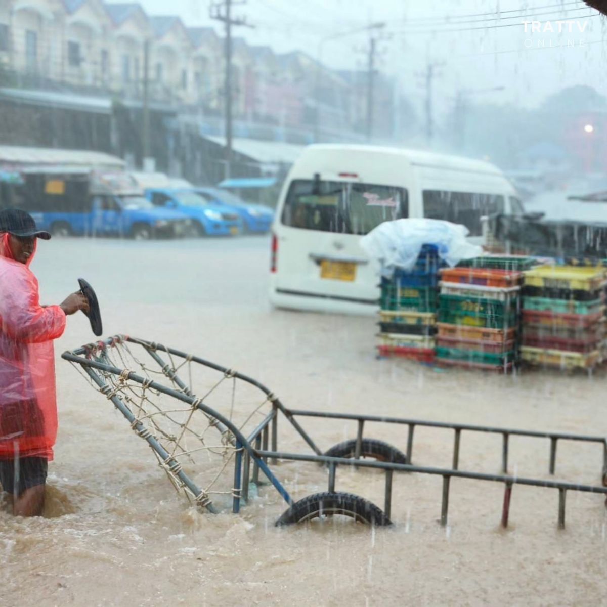 (11 มิ.ย. 68) ฝนตกหนัก อำเภอคลองใหญ่ จังหวัดตราด เกิดน้ำป่าไหลหลากจากเขาบรรทัด ลงสู่ทะเล ทำให้หลายพื้นที่เกิดความเสียหายบางจุดน้ำท่วมสูง รถสัญจรไม่ได้ชั่วคราว เบื้องต้นพบน้ำป่าไหลหลากดังนี้