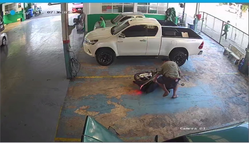 หนุ่มหัวร้อนไล่แทงพนักงานศูนย์เปลี่ยนถ่ายน้ำมัน อ้างขับรถปาดหน้า จ.นนทบุรี