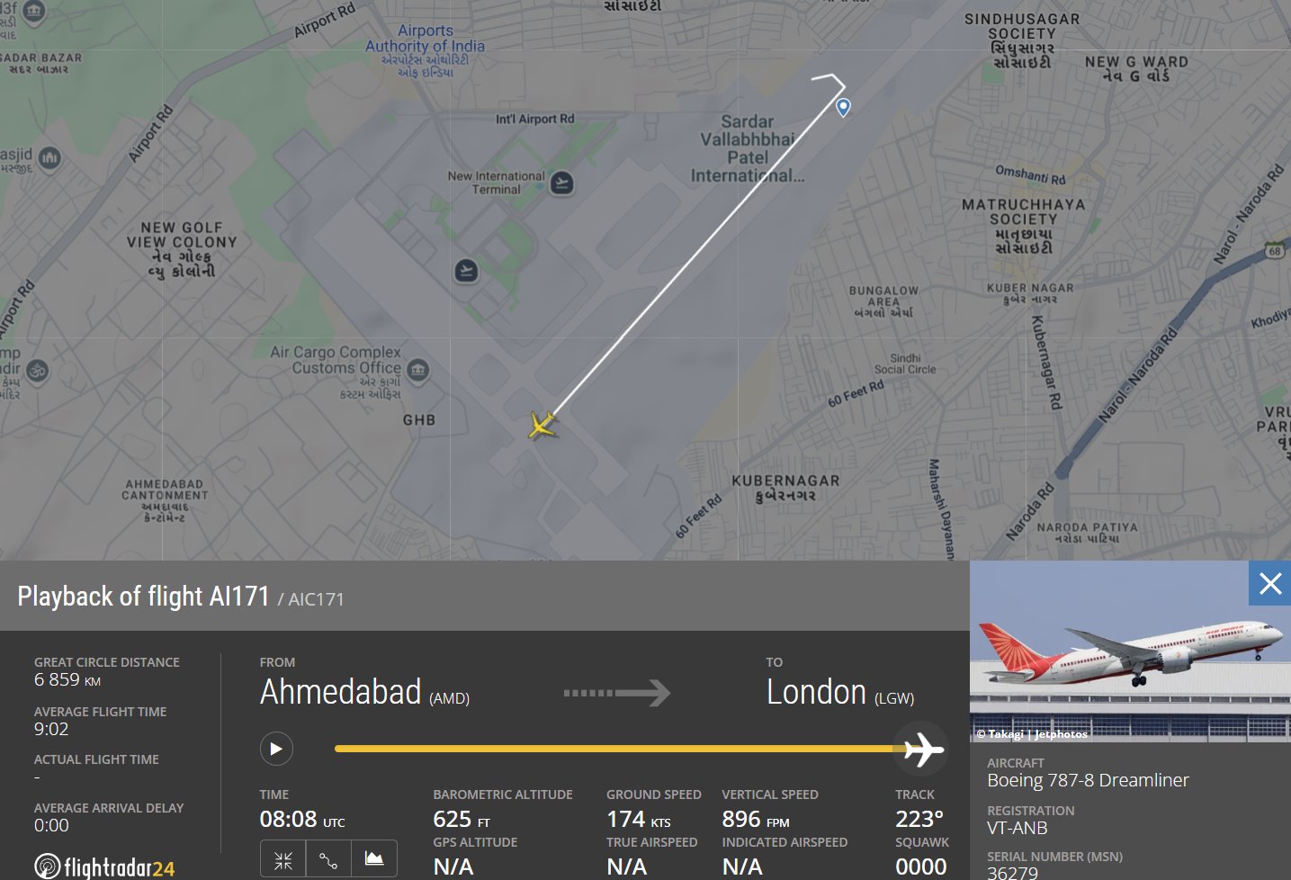 สายการบินแอร์อินเดียรายงานว่าเครื่องบินลำดังกล่าวกำลังมุ่งหน้าไปยังท่าอากาศยาน แกตวิค ของกรุงลอนดอนในสหราชอาณาจักร ในขณะที่เจ้าหน้าที่ตำรวจระบุว่าเครื่องบินตกในพื้นที่พลเรือนใกล้กับท่าอากาศยาน “ขณะนี้กำลังตรวจสอบรายละเอียดและจะอัปเดตข้อมูลเพิ่มเติม”