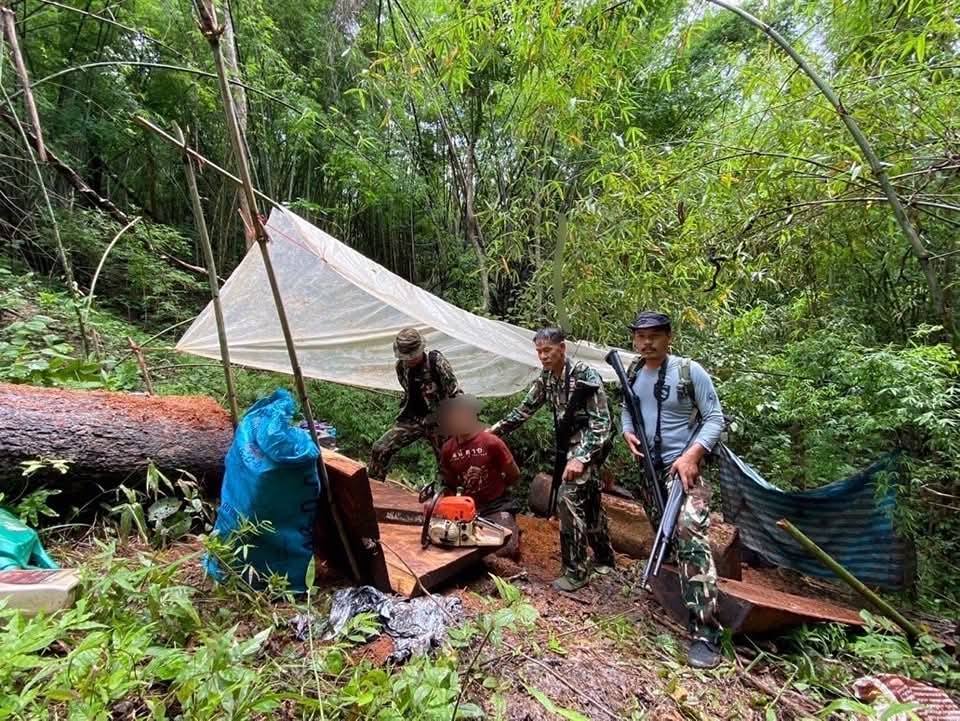รวบหนุ่มลักลอบตัดไม้ประดู่ ในอุทยานฯ ศรีลานนา จ.เชียงใหม่ พร้อมของกลาง