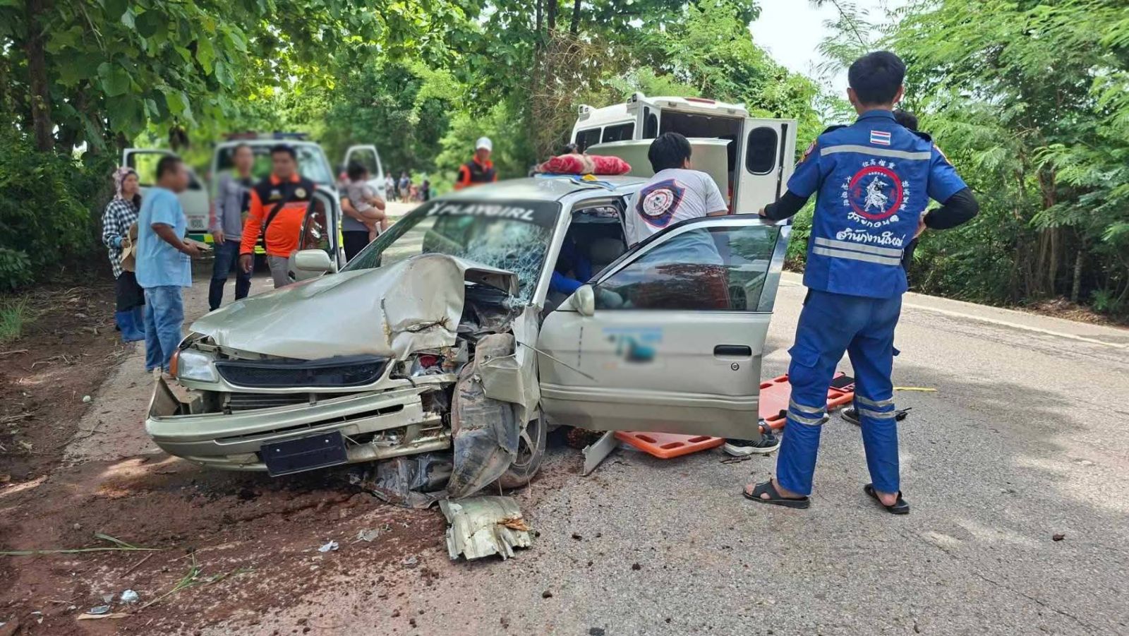 จ.พะเยา รถนั่งส่วนบุคคลเสียหลักพุ่งชนต้นสักใหญ่ข้างทาง ริมถนนสายสันทราย - บ้านวังศิลา พ่อ-ลูกสาวเจ็บ ส่วนแม่ไปเสียชีวิตที่ รพ.