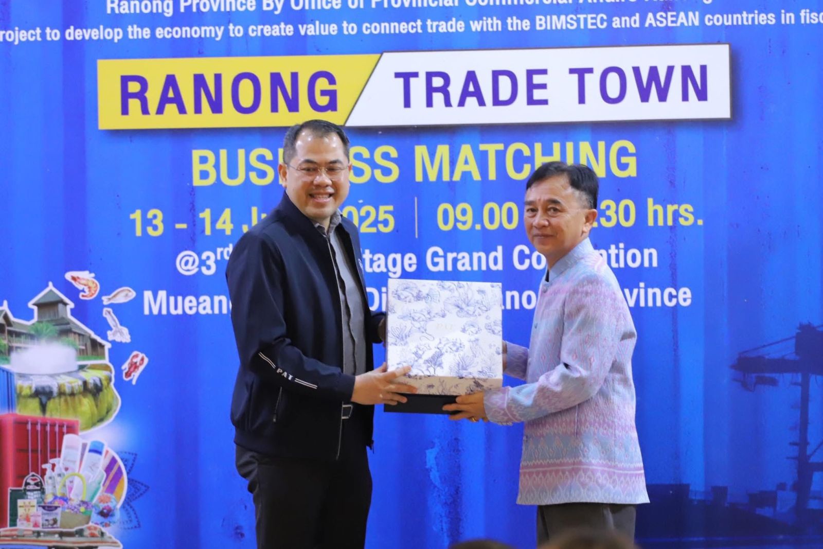 ทั้งนี้มีหน่วยงานภาครัฐและเอกชนเข้าร่วมงาน อาทิ ผู้ประกอบการสินค้าที่มีศักยภาพ ทั้งภายในและภายนอกประเทศ จากกลุ่ม BIMSTEC และอาเซียน ผู้ประกอบการการค้าชายแดน ผู้รับจัดการขนส่งสินค้าระหว่างประเทศ บริษัทสายการเดินเรือ ฯลฯ ณ เฮอริเทจ แกรนด์ คอนเวนชั่น อำเภอเมือง จังหวัดระนอง