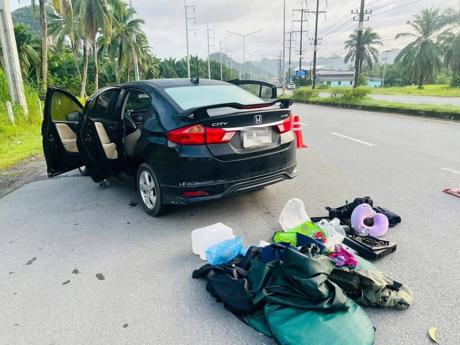 เมื่อ 24 มิ.ย.68 เวลาประมาณ 03.30 น. พ.ต.อ.วีระพงศ์ รักขิโต ผกก.สภ.เมืองพังงา รายงาน ในระหว่างที่ ตร.สภ.เมืองพังงา ตั้งจุดตรวจ บริเวณแยกบายพาส หน้าศาลากลางจังหวัดพังงา พบรถยนต์นั่งส่วนบุคคล สีดำ ทะเบียน สุรินทร์ ขับเลี้ยวไปทางสถานีขนส่งพังงา พบเจ้าหน้าที่ตำรวจที่เฝ้ารอ บังคับให้หยุดรถ และพบชายไทย 2 ราย อายุ 29 ปี ในตำแหน่งผู้ขับขี่ และ อายุ 37 ปี นั่งโดยสารมาด้านหน้าคู่กับผู้ขับขี่ ทั้งคู่เป็นชาว อ.ยะหริ่ง จ.ปัตตานี