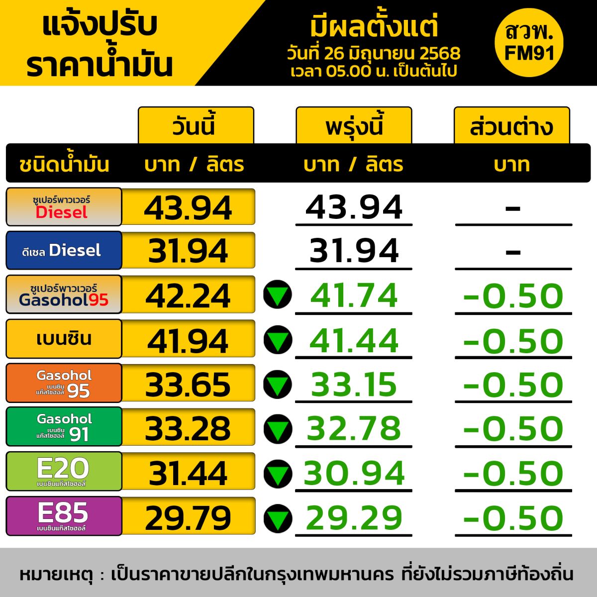 มีผลวันที่ 26 มิ.ย. 68 ตั้งแต่ เวลา 05.00 น. เป็นต้นไป