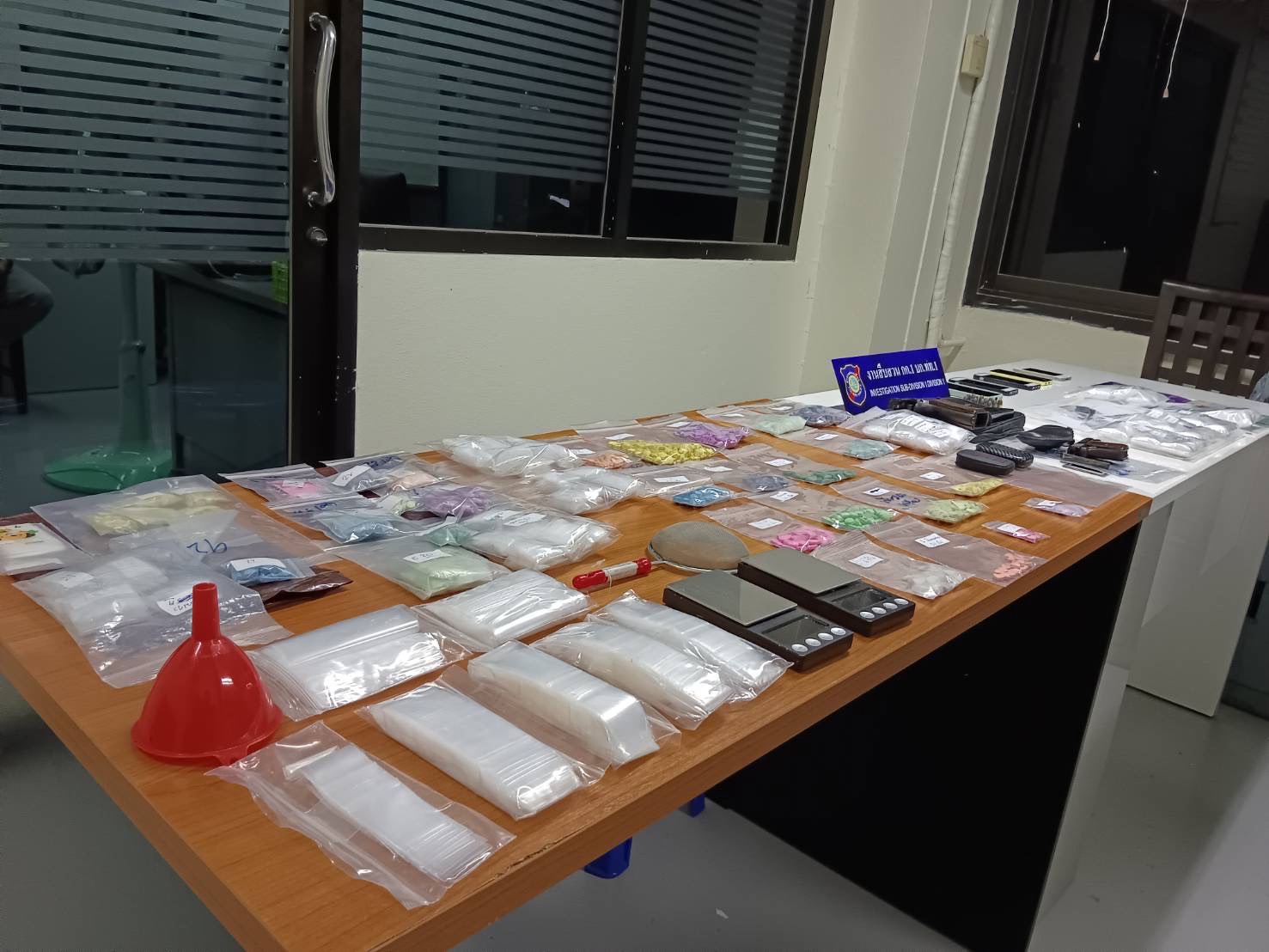 พร้อมของกลางปืนพกสั้น ยี่ห้อ TZ 75 รุ่น ซีรีส์ 88 ขนาด 9 มม.1 กระบอก, ปืนพกสั้น ยี่ห้อ FABRIQUE NATIONALE ขนาด .22 นิ้ว 1 กระบอก, เครื่องกระสุนปืนขนาด 9 มม. 12 นัด ,สมุดบัญชีธนาคาร 4 เล่ม, คีตามีน น้ำหนักรวม 781.47 กรัม 668 ถุง,โคเคอีน 2 แท่ง รวมน้ำหนัก 25.4 กรัม, ยาอีลักษณะต่างๆ รวม 1,394 เม็ด รถ จยย. 2 คัน รถแท็กซี่สาธารณะ 1 คัน และโทรศัพท์มือถือ 5 เครื่อง