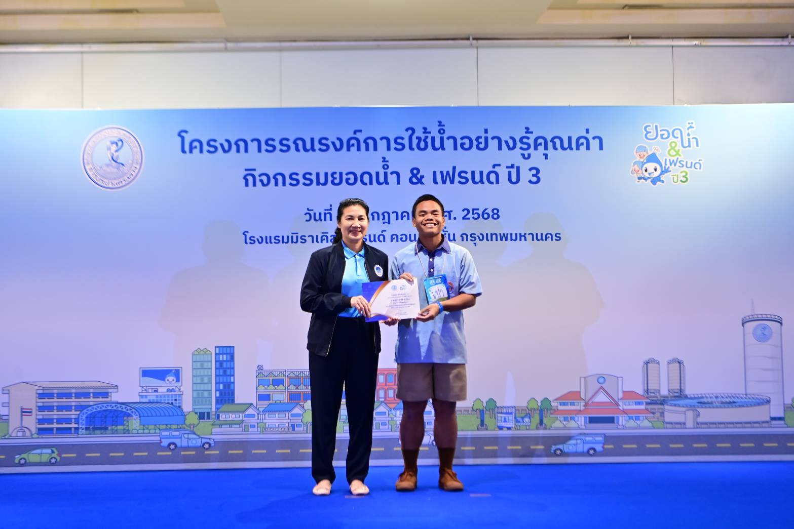 เมื่อวันที่ 1 กรกฎาคม พ.ศ. 2568 เวลา 09.00 น. ณ ห้องจูปิเตอร์ ชั้น 3 โรงแรมมิราเคิล แกรนด์ คอนเวนชั่น กรุงเทพมหานคร นางสาวสุวรา ทวิชศรี ผู้ว่าการการประปานครหลวง (กปน.) เป็นประธานในพิธีเปิดโครงการรณรงค์การใช้น้ำอย่างรู้คุณค่า ภายใต้ชื่อกิจกรรม “ยอดน้ำ & เฟรนด์” ปี 3 พร้อมคณะผู้บริหาร กปน. คณะอาจารย์และนักเรียนจาก 15 โรงเรียนในพื้นที่กรุงเทพมหานคร นนทบุรี และสมุทรปราการ เข้าร่วมพิธี