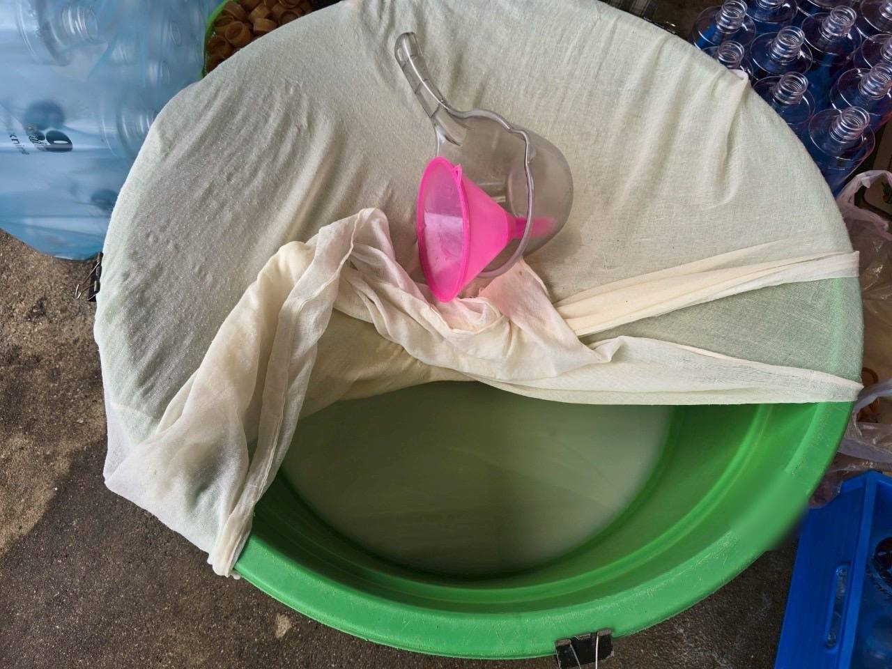 ต่อมาเมื่อวันที่ 1 กรกฎาคม 2568 เจ้าหน้าที่ตำรวจ กก.4 บก.ปคบ. ได้ร่วมกับเจ้าหน้าที่สำนักงานคณะกรรมการอาหารและยา(อย.) นำหมายค้นของศาลจังหวัดพระประแดง เข้าตรวจค้นสถานที่ผลิต ภายในบ้านพักอาศัย ในพื้นที่ อ.พระสมุทรเจดีย์ จ.สมุทรปราการ พบ นางสาว ธา (นามสมมุติ) อายุ 41 ปี เป็นผู้นำตรวจค้น โดยขณะตรวจค้นพบว่า มีการใช้โรงจอดรถบริเวณหน้าบ้านในการผลิต โดยต้มใบกระท่อมต้มในหม้อ จากนั้นนำมาผสมน้ำเชื่อมรสชาติต่างๆ และใช้แรงงานประเทศเพื่อนบ้านนั่งกรอกลงขวดบรรจุภัณฑ์โดยไม่สวมถุงมือแต่อย่างใด โดยสถานที่ใช้ผลิตไม่ได้รับอนุญาต และไม่ถูกสุขลักษณะอนามัย ตรวจยึดผลิตภัณฑ์เครื่องดื่มสำเร็จรูป วัตถุดิบ อุปกรณ์ในการผลิต ดังนี้