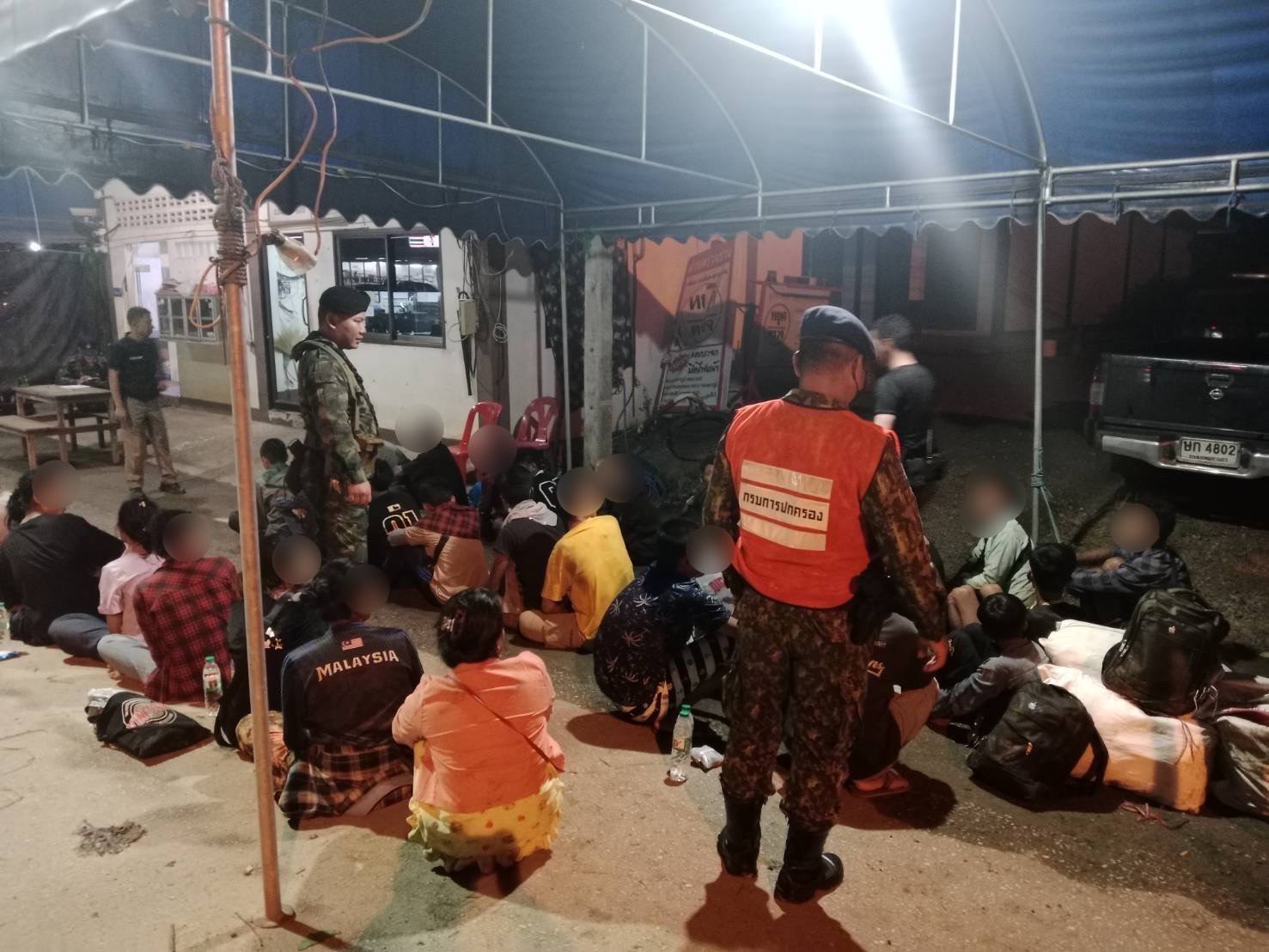 กระทั่ง 01.00 น. ขณะที่เจ้าหน้าที่ปฏิบัติงาน บริเวณ จุดตรวจร่วมสามแยกทองผาภูมิ สังเกตพบรถยนต์ต้องสงสัยตามที่ได้รับแจ้งจากแหล่งข่าว ขับมาจาก อ.สังขละบุรี มุ่งหน้า อ.ทองผาภูมิ จึงได้ให้สัญญาณหยุดรถเพื่อทำการตรวจสอบ แต่ในขณะที่เจ้าหน้าที่กำลังจะเข้าทำการตรวจสอบนั้น รถยนต์คันดังกล่าวได้ทำการเร่งเครื่องยนต์หลบหนีออกไปจากด่านตรวจ เจ้าหน้าที่จึงได้เร่งติดตามไปจนกระทั่งพบรถยนต์กระบะ หมายเลขทะเบียน กรุงเทพมหานคร จอดทิ้งไว้บริเวณริมถนน บ.สหกรณ์นิคม ม.1 ต.สหกรณ์นิคม อ.ทองผาภูมิ จากนั้นเจ้าหน้าที่ฝ่ายความมั่นคงจึงได้ทำการตรวจสอบภายในรถยนต์คันดังกล่าวอย่างละเอียด พบกลุ่มบุคคลคล้ายต่างด้าวผิดกฎหมาย จำนวน 27 คน (ชาย 19 คน และหญิง 8 คน) ต่อมาเจ้าหน้าที่ได้ดำเนินการตรวจสอบเอกสารประจำตัวที่ทางราชการออกให้ แต่กลุ่มบุคคลดังกล่าวไม่สามารถสื่อสารภาษาไทยได้ และไม่สามารถแสดงเอกสารที่ทางราชการออกให้ได้ จึงควบคุมตัวกลุ่มบุคคลต่างด้าวไว้ทั้งหมด