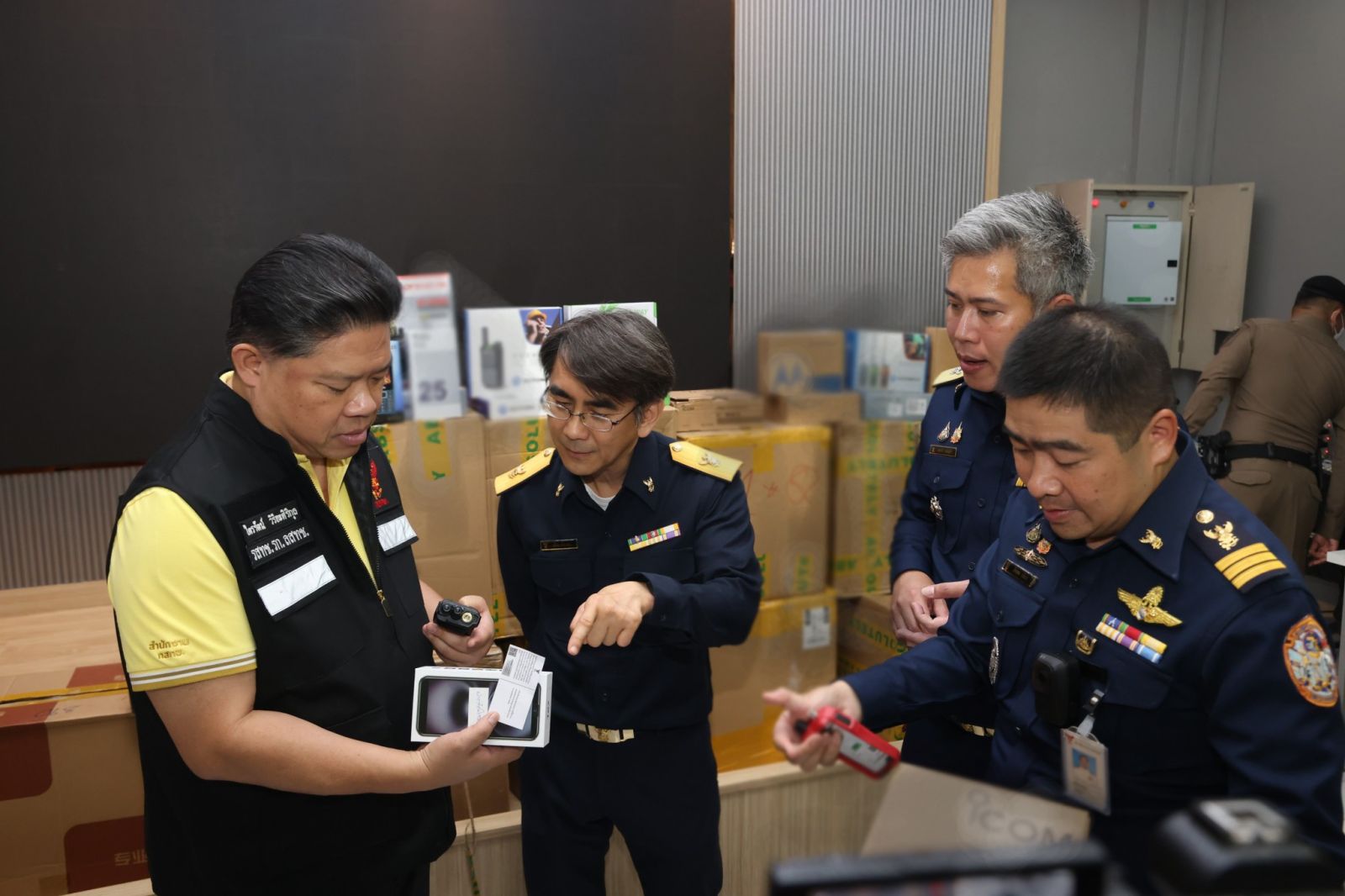 นายไตรรัตน์ วิริยะศิริกุล รองเลขาธิการ รักษาการแทนเลขาธิการ กสทช. กล่าวว่า วันนี้ (3 ก.ค. 2568) สำนักงาน กสทช. โดยทีมพระพาย ร่วมกับตำรวจสืบสวนสอบสวนอาชญากรรมทางเทคโนโลยี (สอท.) กรมศุลกากร และกรมสรรพสามิต เข้าตรวจค้นบริษัทและบ้านพักย่านพระราม 2 พบเครื่องวิทยุคมนาคมยี่ห้อหนึ่งประมาณ 2 หมื่นเครื่อง คิดเป็นมูลค่ารวมประมาณ 20 ล้านบาท พร้อมอุปกรณ์กระจายสัญญาณ WiFi ละเมิดลิขสิทธิ์ และไม่ผ่านการตรวจรับรองมาตรฐานจาก สำนักงาน กสทช.จำนวนมาก รวมทั้งสินค้าอื่น ๆ ที่ละเมิดลิขสิทธิ์ จึงได้ทำการตรวจค้นจับกุมผู้กระทำผิด ในกฎหมายที่เกี่ยวข้อง 4 ฉบับ คือ (1) พ.ร.บ.วิทยุคมนาคม พ.ศ.2498 ฐานนำเข้า มี และจำหน่ายวิทยุคมนาคมโดยไม่ได้รับอนุญาต ปรับไม่เกิน 1 แสนบาท จำคุกไม่เกิน 5 ปี (2) พ.ร.บ.เครื่องหมายการค้า พ.ศ. 2534 ฐานปลอมเครื่องหมายการค้า โทษจำคุกไม่เกิน 4 ปี หรือปรับไม่เกิน 4 แสน หรือทั้งจำทั้งปรับ (3) พ.ร.บ.ปลอมแปลงเอกสารราชการ พ.ศ.2499 เป็นประมวลกฎหมายอาญา โทษจำคุกไม่เกิน 3 ปี หรือปรับไม่เกิน 6,000 บาท หรือทั้งจำทั้งปรับ และ (4) พ.ร.บ.เครื่องหมายราชการ พ.ศ.2482 โทษจำคุกไม่เกิน 1 ปี ปรับไม่เกิน 2,000 บาท เนื่องจากฐานมีนำเข้าและจำหน่ายเครื่องวิทยุคมนาคมโดยไม่ได้รับอนุญาต อีกครั้งยังมีการปลอมแปลงเอกสารของสำนักงาน กสทช. และปลอมแปลงสติ๊กเกอร์ กสทช.