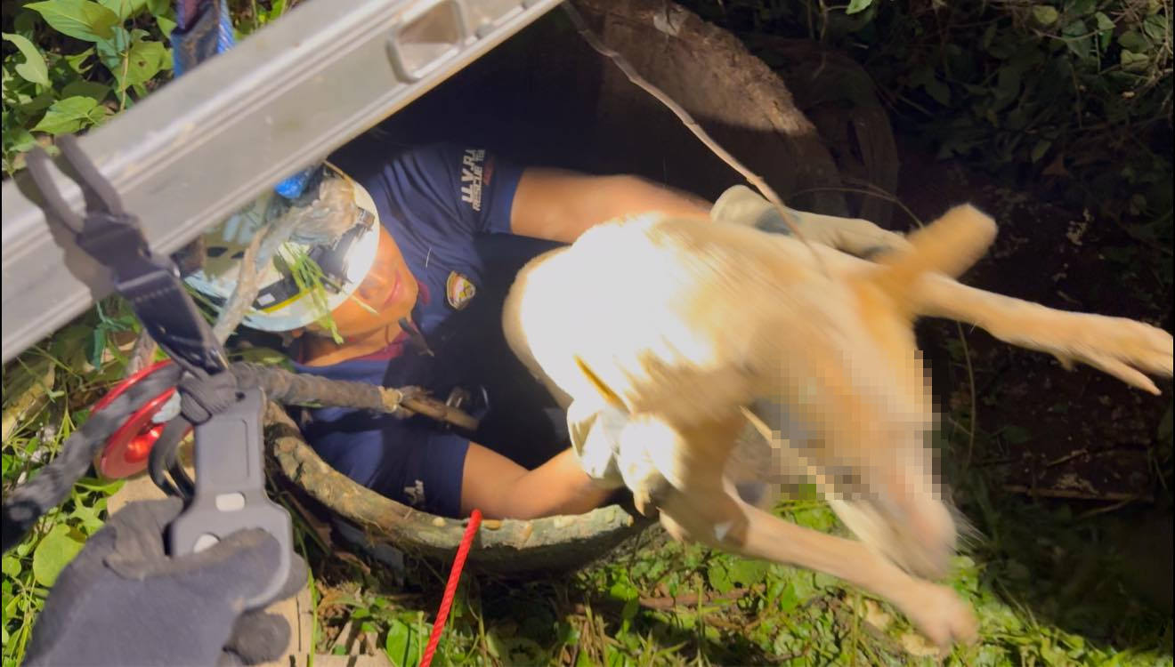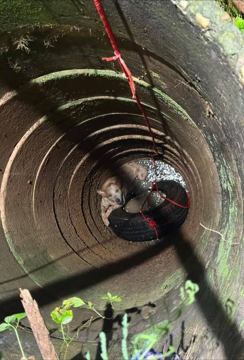 โดยทาง พี่ๆ อาสาสมัคร นำชุดอุปกรณ์โรยตัว ลงเข้าไปช่วยเหลือสุนัขตัวดังกล่าว ในความลึกของบ่อน้ำ ประมาณ10เมตร ใช้เวลาประมาณ 20 นาที สามารถนำขึ้นมาได้อย่างปลอดภัย