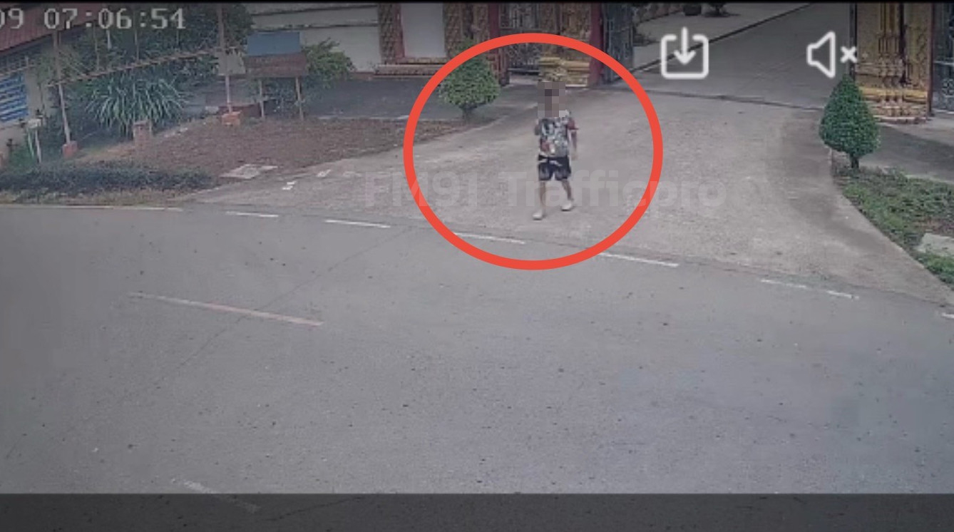 ภาพจากกช้องวงจรปิดหน้าวัดจับภาพรถMG สีขาวได้เมื่อเวลา 07.05 น. ขับเลี้ยวเข้าประตูสัด จากนั้นเวลา 07.06 น. นายเอ (นามสมมุตติ) ได้เดินเท้าออกมาจากประตูวัด ต่อมาเวลา 07.07 น. จับภาพนายเอ (นามสมมุตติ) เดินไปตามถนนเลียบคลองมะสงหลบหนี