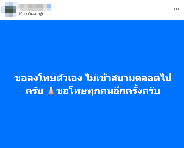 ล่าสุดแฟนฟุตซอล ที่เป็นประเด็นดังกล่าว โพสต์คลิป “ขอโทษสโมสร Bangkok BTS แฟนฟุตซอลและเพื่อนอิสลามทุกคนทั่วประเทศครับ ผมผิดและความผิดพลาดครั้งนี้ผมยอมรับผิดแบบลูกผู้ชายแต่เพียงผู้เดียว ขอแบนตัวเองไม่เข้าสนามตลอดไป ขอเพื่อน ๆ ทุกคนให้อภัยนะครับ”