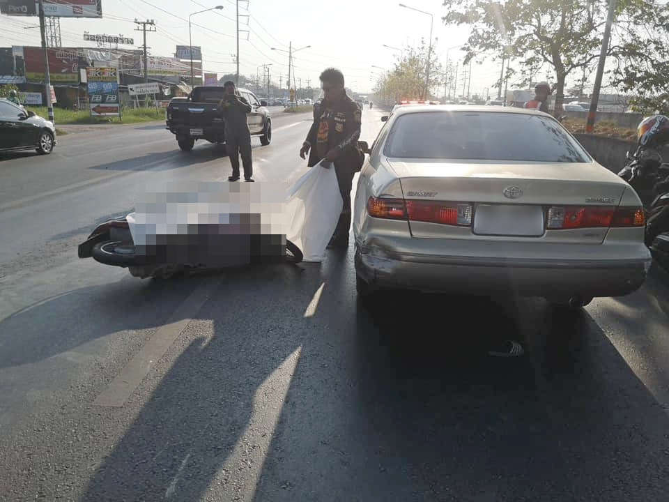 รถเก๋ง ชนกับรถจักรยานยนต์กลางถนนสาย 345 มีผู้เสียชีวิตเป็นผู้หญิง พบตั้งครรภ์ 7 เดือน จ.ปทุมธานี