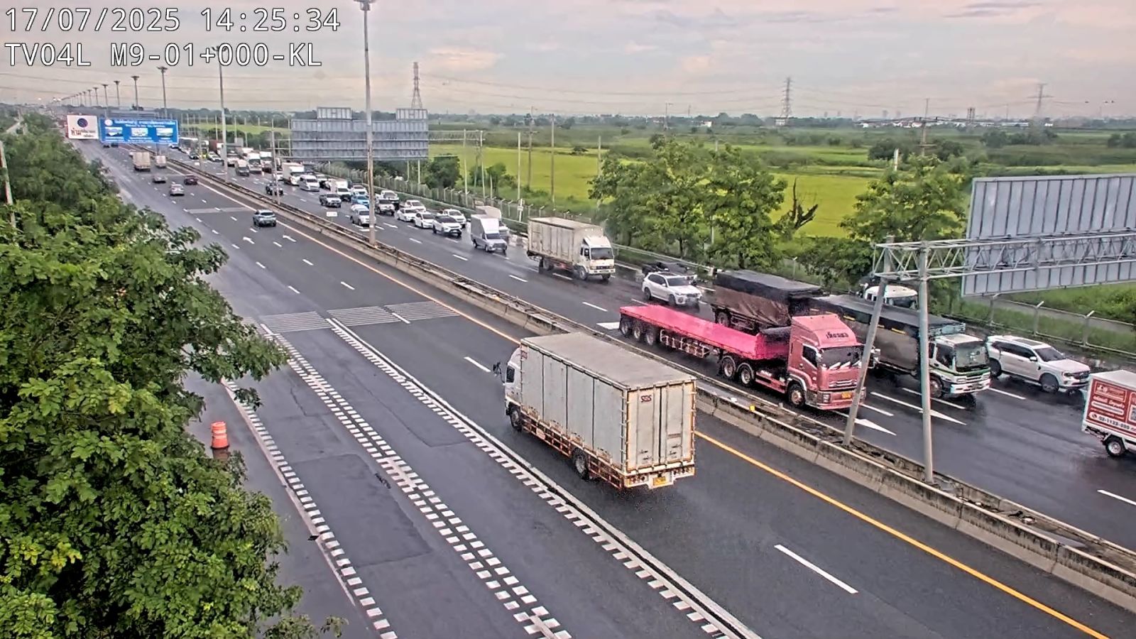 17 กรกฏาคม 2568 เวลา 14.08 น. เกิดอุบัติเหตุรถบรรทุกตู้คอนเทนเนอร์ เสียหลักพลิกตะแคงขวางถนน เหตุเกิดช่วงก่อนลงวงแหวนบางปะอิน เจ้าหน้าที่กำลังเร่งเคลื่อนย้าย วงแหวนกาญจนาภิเษก จากคลองหลวงมุ่งหน้าวังน้อย ล่าสุดรถบรรทุกตู้คอนเทนเนอร์พลิกตะแคงขวางถนน 2 ช่องทาง ส่งผลให้การจราจรที่กำลังมุ่งหน้าลงถนนพหลโยธิน (ขาเข้า) เพื่อข้ามสะพานบางปะอินไป บางบัวทอง อยุธยา รถไม่สามารถสัญจร จุดนี้เจ้าหน้าที่ได้ปิดจราจรเป็นการชั่วคราว โดยปัดรถให้ตรงวิ่งข้ามไปลงถนนพหลโยธิน ขาออก เพื่อระบายและผ่อนคลายจราจรติดขัดสะสม