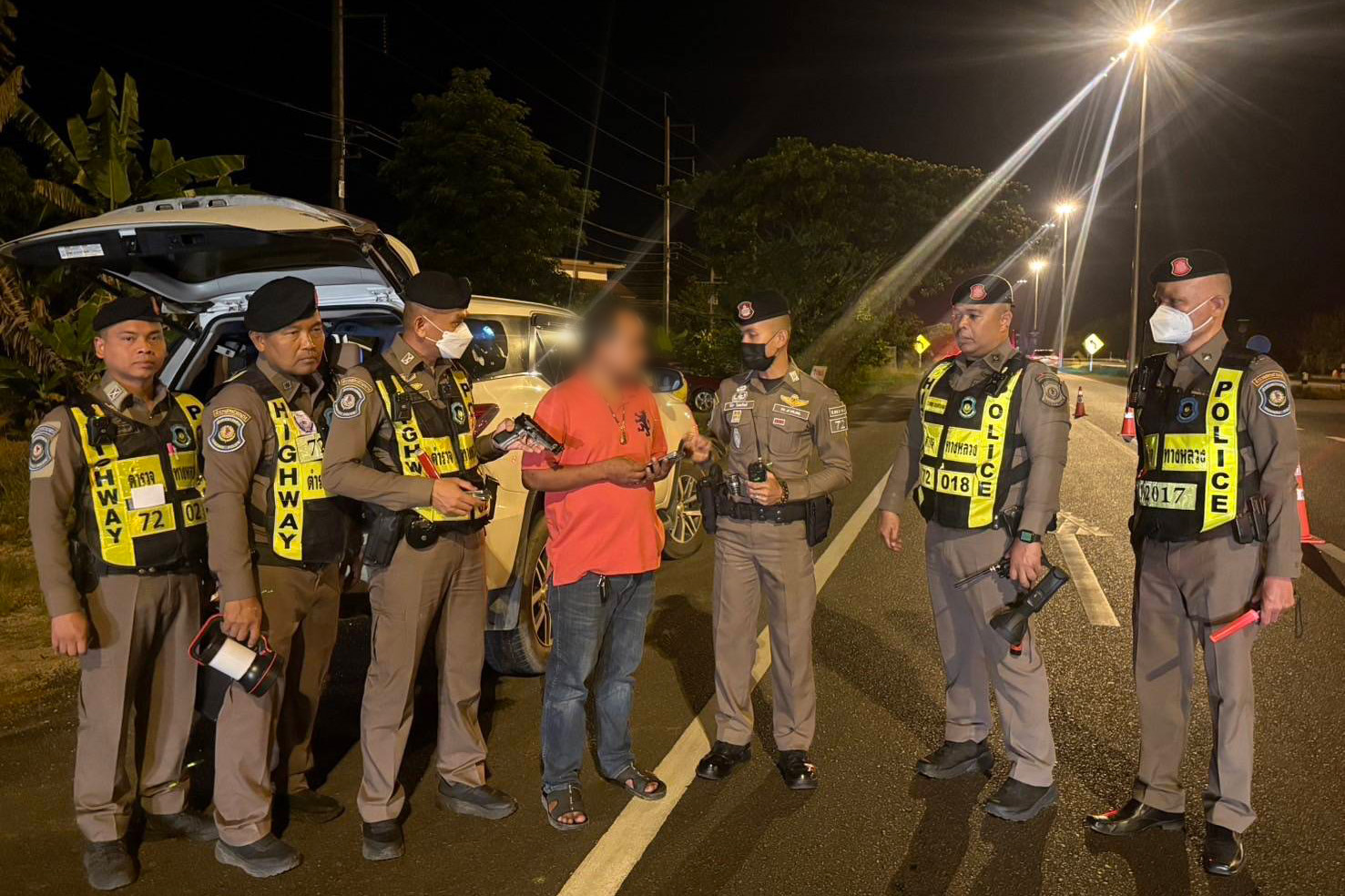 กองบังคับการตำรวจทางหลวง โดย พล.ต.ต.คงกฤช เลิศสิทธิกุล ผบก.ทล. พร้อมด้วยเจ้าหน้าที่ ส.ทล.2 กก.7 บก.ทล. ร่วมกันจับกุม นายพัน (นามสมมุติ) อายุ 35 ปี ซึ่งถูกกล่าวหาว่ากระทำความผิดฐาน จับกุมได้บนถนนทางหลวงหมายเลข 4 กม.1183-1184 หมู่ที่ 2 ต.ควนขนุน อ.เขาชัยสน จ.พัทลุง