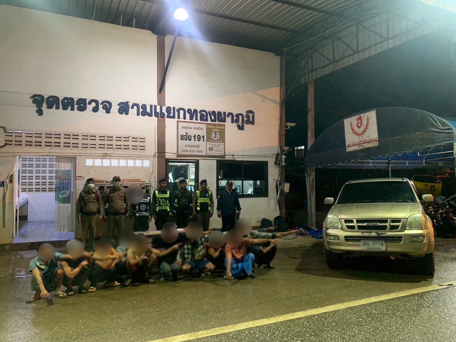 จากตรวจสอบรถยนต์กระบะทั้ง 3 คัน พบต่างด้าวหลบหนีเข้าเมืองโดยผิดกฎหมาย จำนวน 48 คน (ชาย 38 คน และหญิง 10 คน) บรรทุกมาเต็มภายในท้ายรถกระบะ โดยกลุ่มบุคคลดังกล่าวไม่สามารถสื่อสารภาษาไทยได้ ไม่สามารถแสดงเอกสารประจำตัวที่ทางราชการออกให้ได้