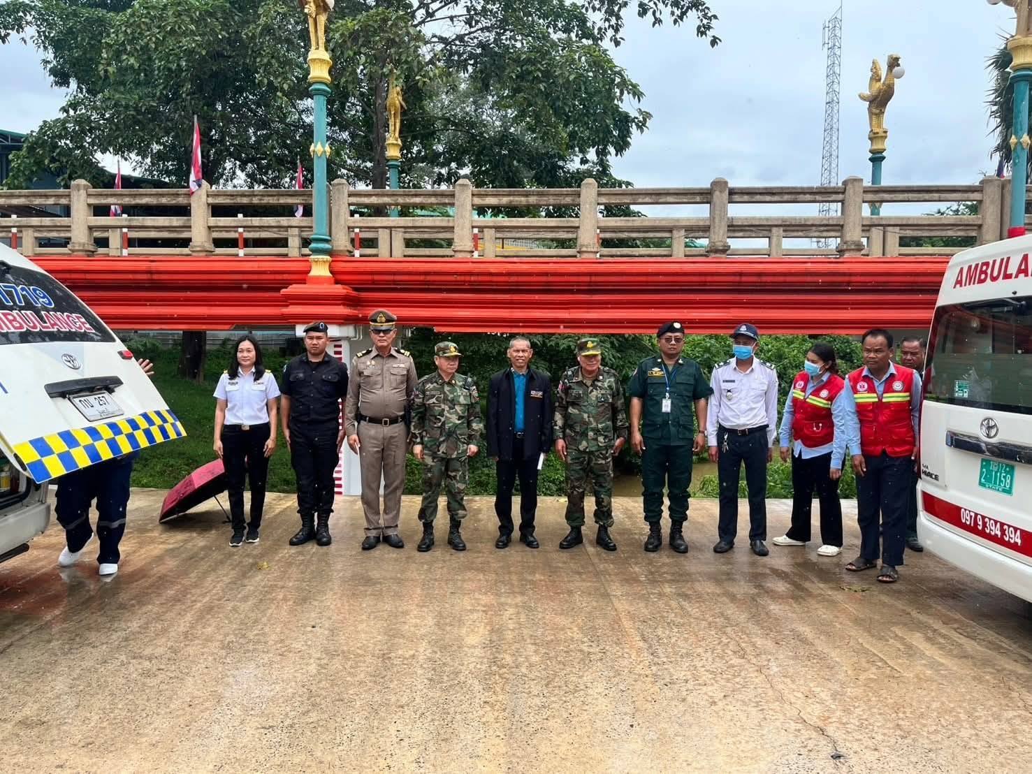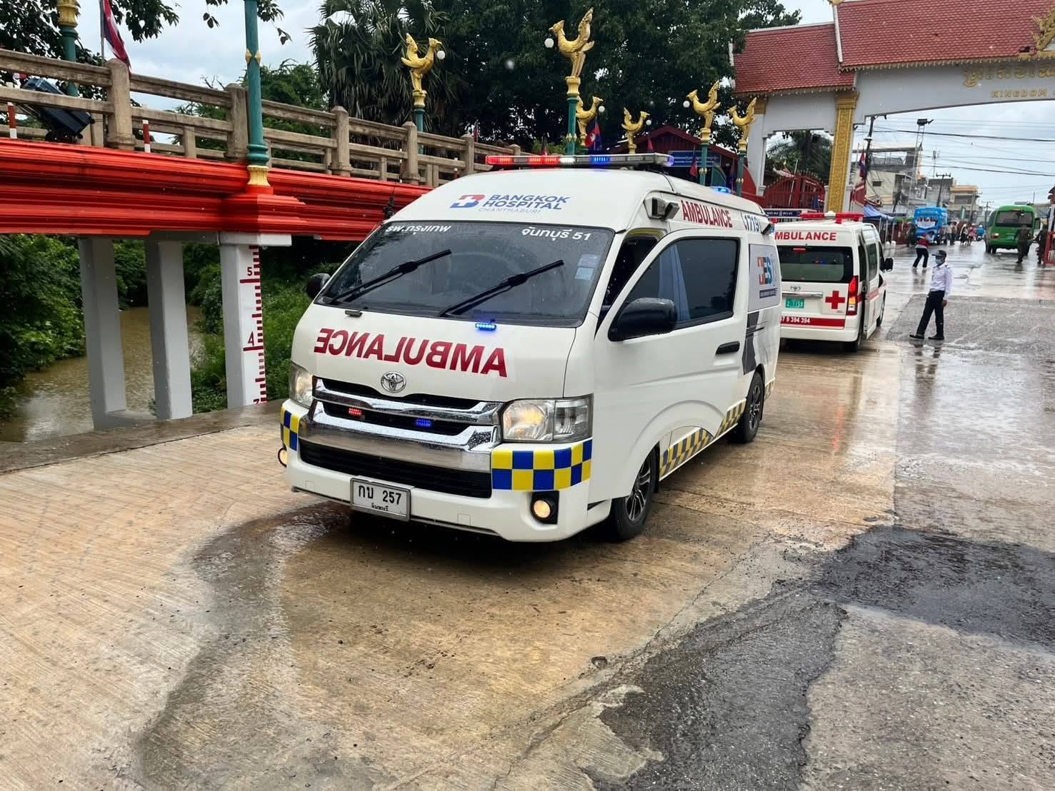 วันที่ 20 กรกฎาคม 2568 เวลา 11.50 น. กองบัญชาการป้องกันชายแดนจันทบุรีและตราด โดย นาวาเอก สยาม เชิดชิด หัวหน้าหน่วยประสานงานชายแดนประจำพื้นที่ จันทบุรี สำนักงานประสานงานชายแดนไทย - กัมพูชา ได้รับการประสานจาก นายแพทย์ วีระชัย แสงสุข ผู้ช่วยผู้อำนวยการ โรงพยาบาลกรุงเทพจันทบุรี เพื่อขอความอนุเคราะห์ในการอำนวยความสะดวกการผ่านแดนให้กับ หญิง อายุ 78 ปีราายหนึ่ง กรณีผู้ป่วยฉุกเฉินเส้นเลือดในสมองแตก ซึ่งได้รับการผ่าตัดแล้ว ปวดศีรษะ เจาะคอ แขนข้างซ้ายชาและอ่อนแรง พร้อมผู้ร่วมเดินทางรวม 3 คน ในการเดินทางผ่านออกประเทศไทย ณ จุดผ่านแดนถาวรบ้านแหลม ตำบลเทพนิมิต อำเภอโป่งน้ำร้อน จังหวัดจันทบุรี หลังจากเดินทางไปรับการรักษา ณ โรงพยาบาลกรุงเทพจันทบุรี ตำบลวัดใหม่ อำเภอเมืองจันทบุรี จังหวัดจันทบุรี จึงได้ประสาน ร้อยตำรวจโท สุภาพ สุริยะชัยเจริญกุล ร้อยเวรประจำวัน ประจำจุดตรวจคนเข้าเมืองบ้านแหลม นาวาเอก ไกรสร โพธิ์ตุ่น หัวหน้าชุดควบคุมทหารพรานนาวิกโยธินที่ 2 หน่วยเฉพาะกิจทหารพรานนาวิกโยธิน และหน่วยประสานงานชายแดนกัมพูชา - ไทย เพื่ออำนวยความสะดวกในการเดินทางกลับไปพักรักษาตัวที่ประเทศกัมพูชาต่อไป