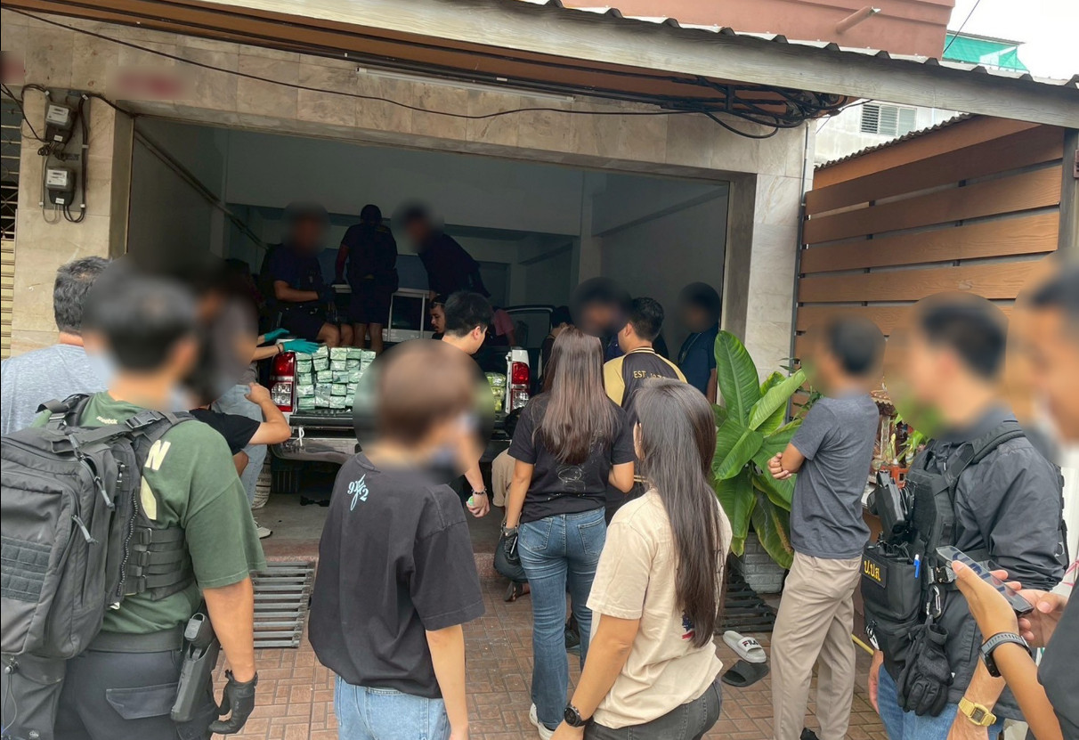 นายปฤณ เมฆานันท์ ผู้อำนวยการสำนักปราบปรามยาเสพติด สำนักงาน ป.ป.ส. จึงสั่งการให้ สำนักปราบปรามยาเสพติด บูรณาการความร่วมมือกับ ปปส.ภ.5, ศปก.ทบ., ศรภ., ศอ.ปส.ทอ., ชปพ.ศอ.ปส.ทร. (นสร.กร.) และ ขกท.ทบ. ติดตามรถยนต์ต้องสงสัยคันดังกล่าวจากพื้นที่ จ.เชียงราย กระทั่งวันที่ 20 กรกฎาคม 2568 พบว่ารถยนต์คันดังกล่าวถูกนำไปจอดทิ้งไว้ในพื้นที่ จ.สมุทรปราการ โดยผู้ขับขี่ได้มานั่งรออยู่บริเวณใกล้เคียง จากนั้นมีบุคคลมาขับรถคันดังกล่าวออกไป และนำเข้าไปจอดที่โกดังลักษณะเป็นอาคารพาณิชย์ ในพื้นที่ จ.สมุทรปราการ เจ้าหน้าที่จึงนำกำลังเข้าตรวจค้นพร้อมจับกุม ผู้ต้องหารวม 5 คน คีตามีน 150 กก. ไอซ์ 5 กก. ซุกซ่อนในช่องลับรถยนต์ จากนั้นขยายผลตรวจค้นรวม 5 จุด (จ.สมุทรปราการ 4 จุด, จ.พะเยา 1 จุด) ตรวจยึดอายัดทรัพย์สิน อาทิเช่น รถยนต์ 5 คัน รถจักรยานยนต์ 2 คัน สร้อยคอทองคำ เงินในบัญชีธนาคารและเงินสด รวมมูลค่าประมาณ 3,350,000 บาท