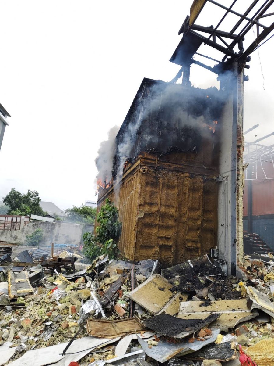 เวลา 12.12 น. ขณะนี้เพลิงสงบ ลักษณะที่เกิดเหตุเป็นตู้คอนเทนเนอร์ อยู่ระหว่างการรื้อถอน รายละเอียดเพิ่มเติมอยู่ระหว่างการตรวจสอบ
