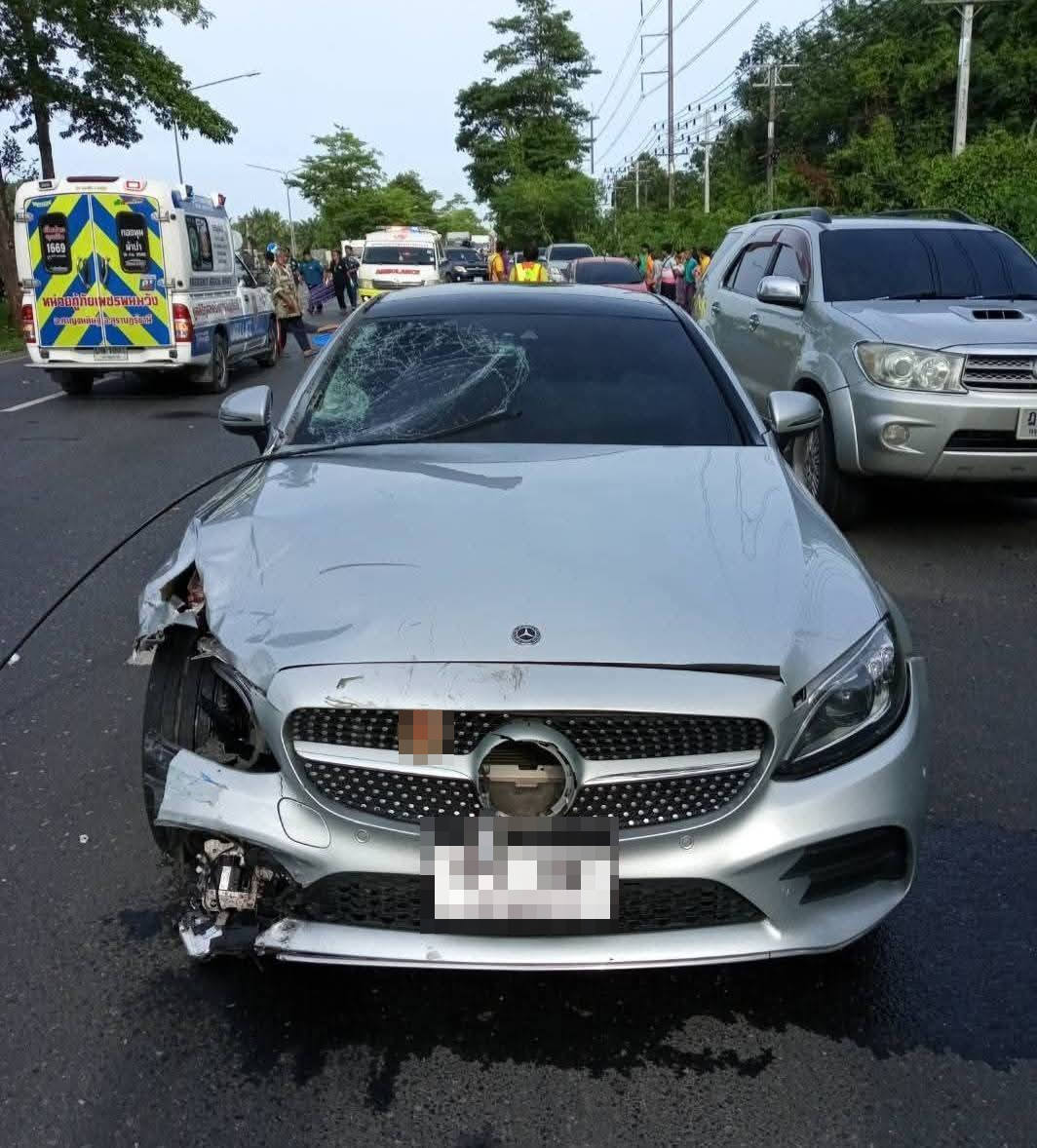แม่ขี่รถ จยย.ไปส่งลูกคนโต มีน้องๆ นั่งซ้อนท้าย ชนกับรถเก๋งกลางถนน เสียชีวิต 3 ราย และสาหัส 1 ราย จ.สุราษฎร์ธานี