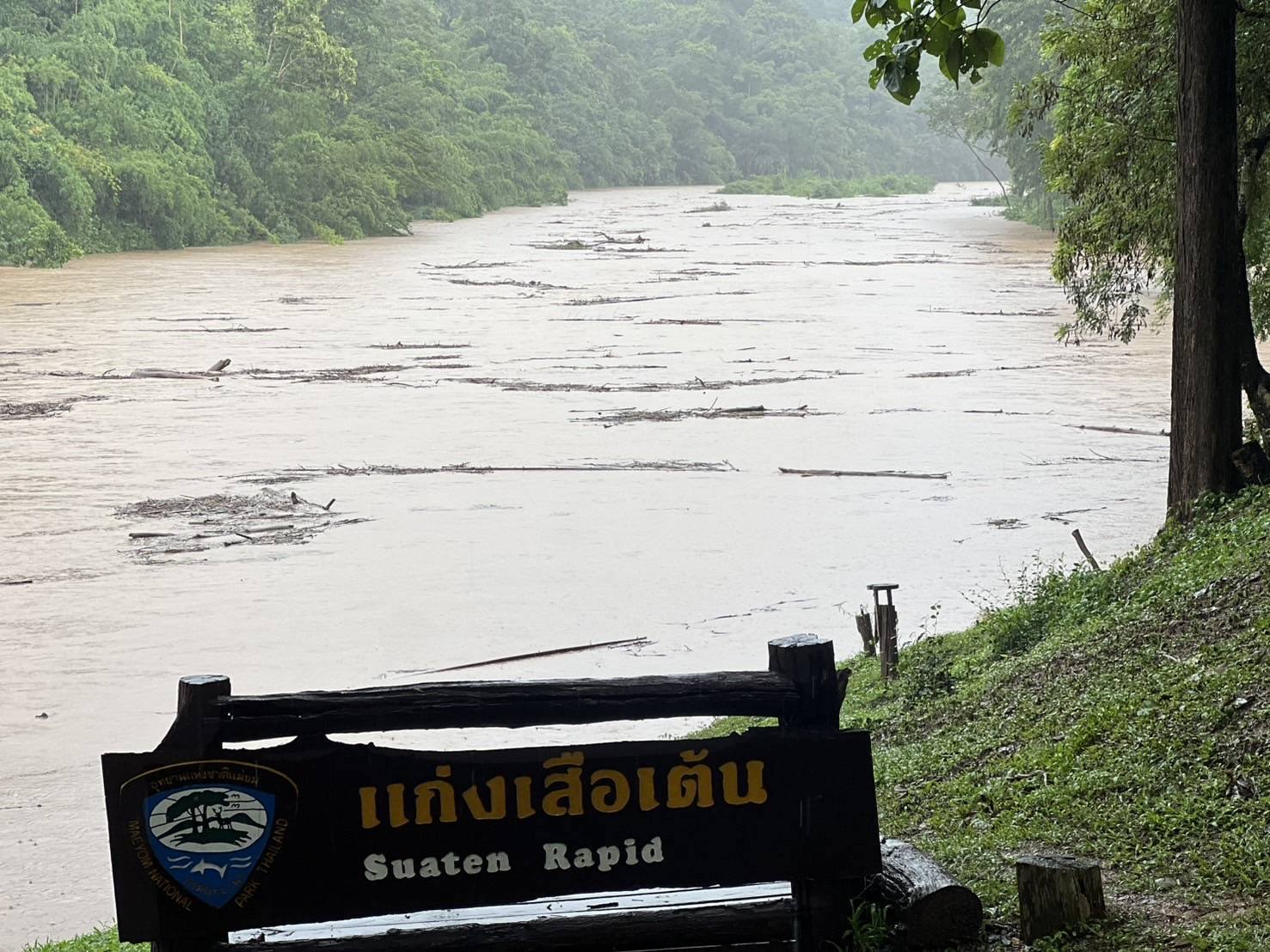 นายก้องไมตรี เทศสูงเนิน หัวหน้าอุทยานแห่งชาติแม่ยม เปิดเผยว่า ขณะนี้ได้มีน้ำไหลหลากเพิ่มระดับน้ำแม่น้ำยมสูงและต่อเนื่อง สถานี Y20 (ห้วยสัก) ระดับน้ำ 9 เมตร ระดับน้ำเพิ่มสูงระดับเตือนภัยท่วมถนนเข้าแหล่งท่องเที่ยวแก่งเสือเต้น ที่ทำการอุทยานแห่งชาติแม่ยม ยานพาหนะไม่สามารถสัญจรได้ ประกอบกับมีฝนตกต่อเนื่องตลอดทั้งคืนมี ทำให้ระดับน้ำในแม่น้ำยมมีแนวโน้มสูงขึ้นอย่างรวดเร็ว