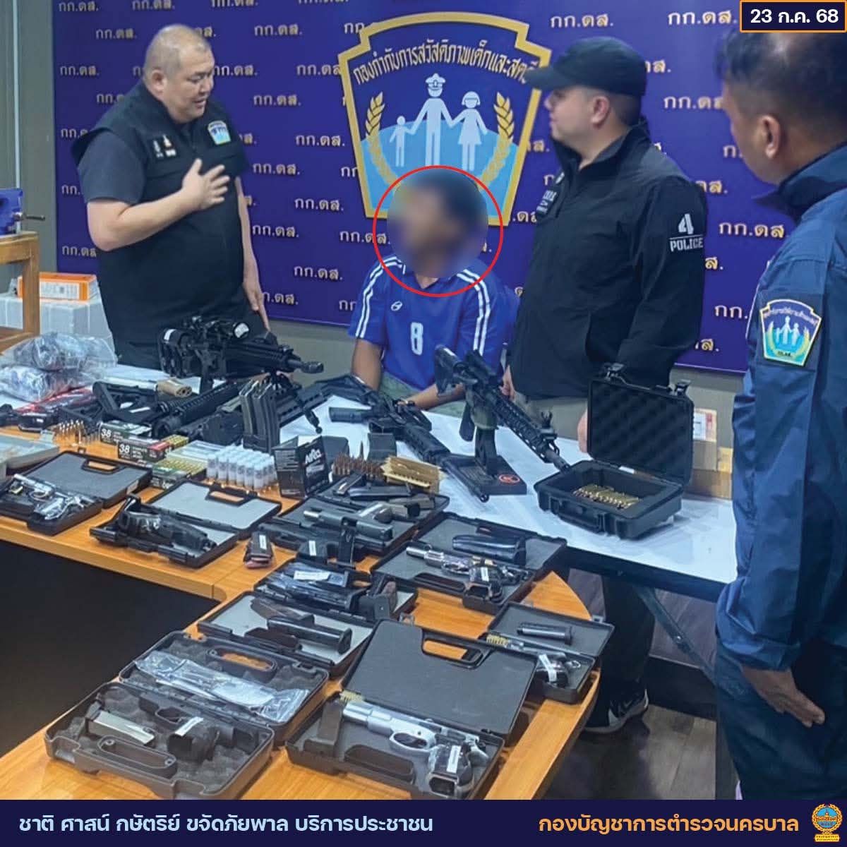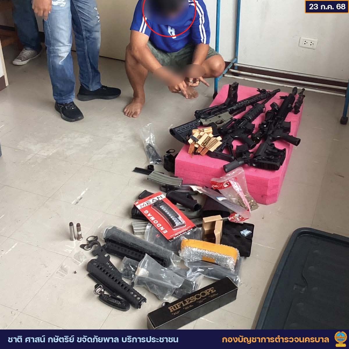 ช่วงบ่าย วานนี้ (22 กค. 68) พ.ต.อ.ศานติ กรเกษม ผกก.ดส. สั่งการ พ.ต.ท.รชต พุ่มพันธุ์ม่วง สว.กก.ดส.นำกำลังเข้าจับกุม นายเอ (นามสมมติ) อายุ 27 ปี พร้อมของกลาง อาวุธปืนเล็กยาว 3 กระบอก, ปืนพก 11 กระบอก (รวมปืนไทยประดิษฐ์และแบลงค์กัน) , เครื่องกระสุนกว่า 450 นัด และ อุปกรณ์ประกอบอาวุธปืนอีกจำนวนมาก โดยจับกุมได้ที่บ้านพักย่านธัญบุรี จังหวัดปทุมธานี