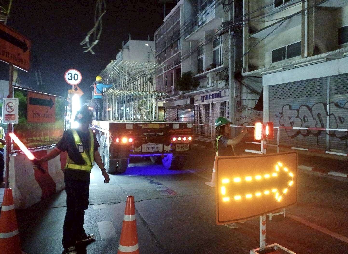 โดยลงพื้นที่บริเวณสถานีอนุสาวรีย์ประชาธิปไตย สถานีหลานหลวง สถานียมราช สถานีราชเทวี สถานีประตูน้ำ และสถานีราชปรารภ โดยได้ตรวจสอบการติดตั้งแผงผ้าใบ ไฟส่องสว่าง ไฟสัญญาณเตือน และป้ายเตือนต่าง ๆ ตามแนวเขตก่อสร้าง ให้มั่นคงแข็งแรง อยู่ในตำแหน่งที่ปลอดภัย สามารถเห็นได้อย่างชัดเจน การเก็บวัสดุอุปกรณ์ที่ไม่ใช้แล้วให้เรียบร้อย