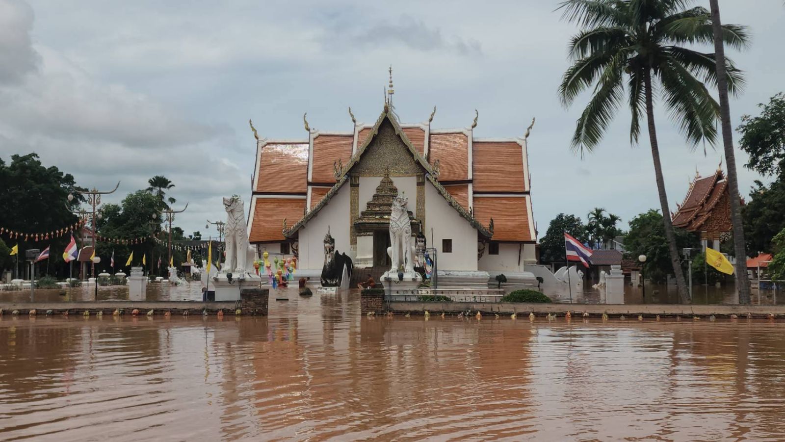 วันที่ 25 กรกฎาคม 2568 ทีมข่าวลงพื้นที่วัดภูมินทร์ ตำบลในเวียง อำเภอเมืองน่าน พบว่าน้ำยังท่วมล้อมรอบวัด ระดับน้ำลึกกว่า 1 เมตร ส่งผลให้พระและสามเณรกว่า 25 รูปยังคงใช้ชีวิตอย่างยากลำบาก ขาดน้ำประปาและไฟฟ้าใช้หลายวันติดต่อกัน