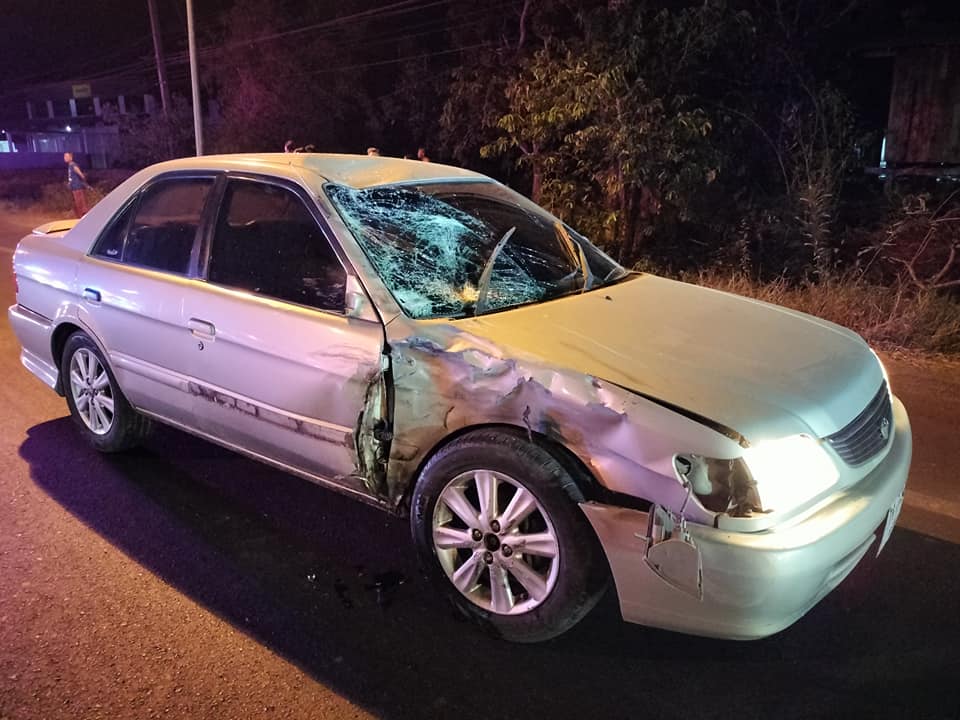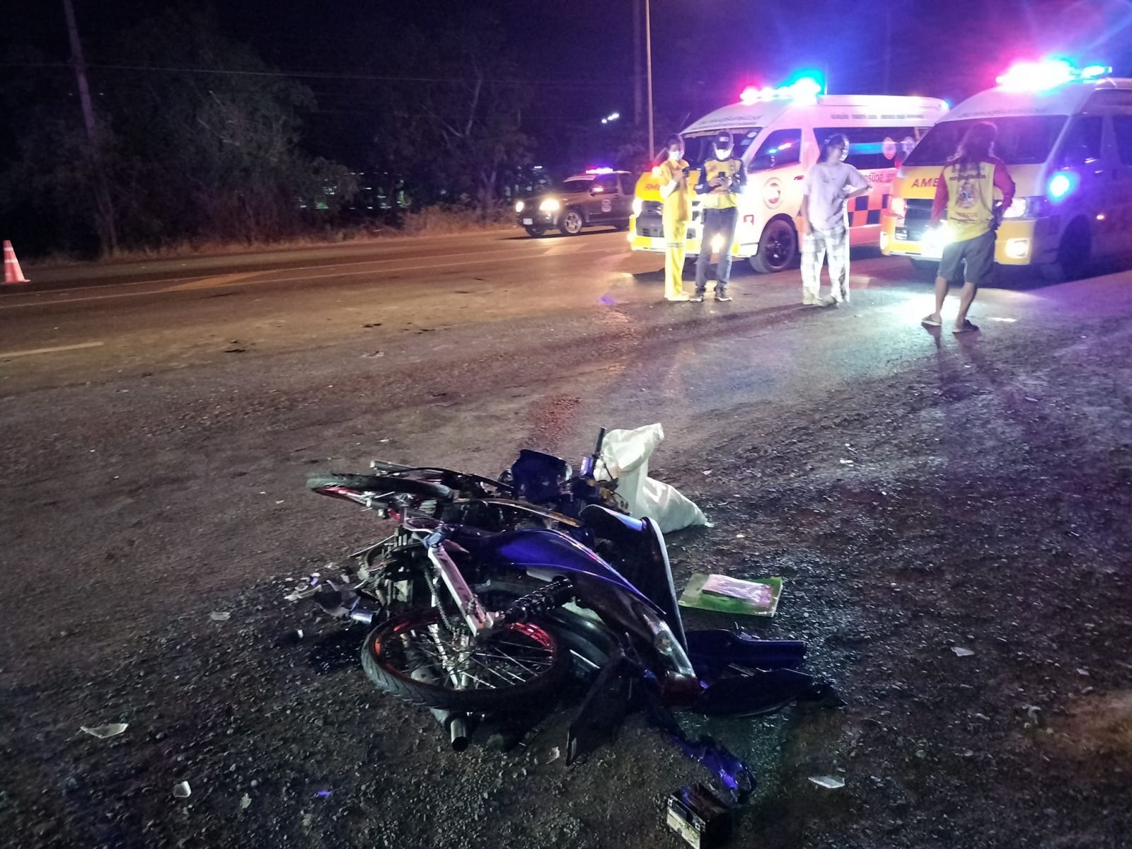 หนุ่มวัย 20 ขี่รถจักรยานยนต์ ชนกับรถนั่งส่วนบุคคลเกือบเข้ากลางลำ เสียชีวิตกลางถนนสายสุรินทร์ - ลำดวน