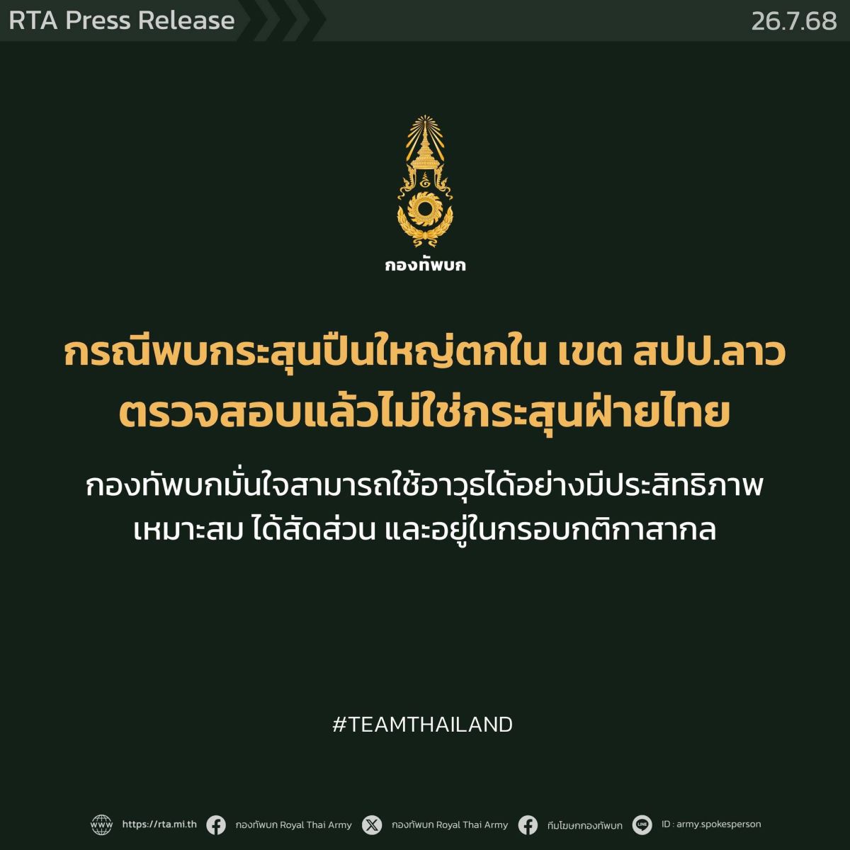 ศูนย์ประชาสัมพันธ์กองทัพบก โดยทีมโฆษกกองทัพบก, 26 กรกฎาคม 2568