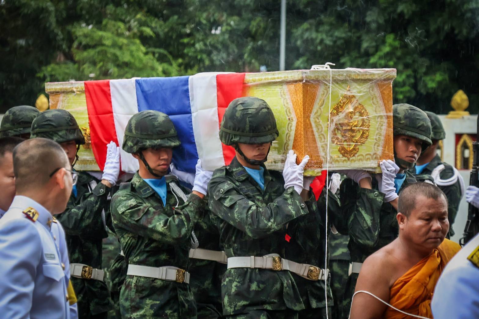 พ.อ. ศรณณัฐ นวลมณี เสธ.ร.3 เป็นผู้แทน ผบ.ร.3 พร้อมด้วยคณะนายทหารสัญญาบัตร นายทหารประทวน และทหารกองประจำการ ร่วมพิธีรับศพ ส.ต. วรัญชิต ยวงสุวรรณ ตำแหน่งสนาม พลกระสุน ร้อย.ค.หนัก. กรม ร.ฉก.ทภ.2 กำลังพลที่เสียชีวิตจากการปกป้องอธิปไตย จากเหตุการณ์ปะทะตามแนวชายแดนไทย-กัมพูชา อย่างสมเกียรติ ณ วัดสว่างอารมย์ ต.เหล่าพัฒนา อ.นาหว้า จ.นครพนม